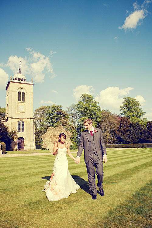 Emmaline & Guy had a 2 day wedding – the first, a modern urban ceremony, which took place in London at The Soho Hotel and the second, a more classic and countryside reception, at Gayhurst House, Milton Keynes. “We had contemplated getting married close to where we live in London, but Gayhurst was too much of a beautiful location to miss out on, so I think this made us love our civil ceremony at Soho House even more”, explained Emmaline. “Since the hotel opened we have spent many evenings there with friends and because of my job in PR I have been to lots of private screenings in the cinema there too. With just our parents and ourselves, we had a really special day, carrying out all the legalities of the marriage before Guy and I boarded a flight to Dubai for a 5 day ‘mini-moon’, making sure we had time to relax in the sun just before the big day.”