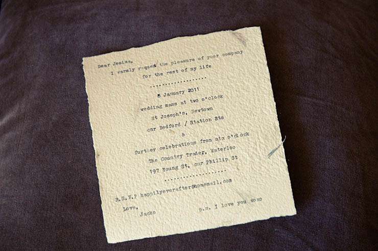 The bride wore a genuine vintage dress and jewellery which she was gifted by a friend who owns a vintage store after she’d modelled for her. Her reception dress was by Fleur Wood. Jemima’s bridesmaid also wore a vintage dress from Ruby Lane and to keep the theme going, the couple made all their invitations using a vintage typewriter on hondmade paper, “Time consuming but really a joy to type up. Also cost effective” Jemima concluded.