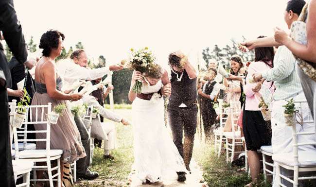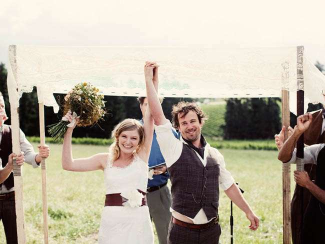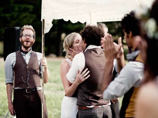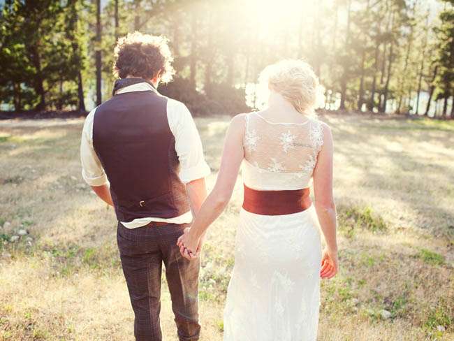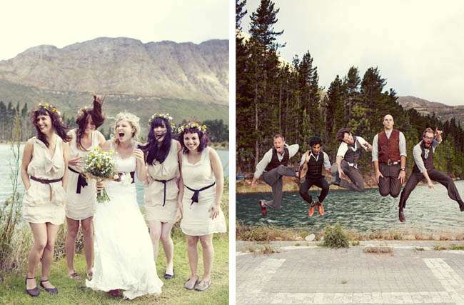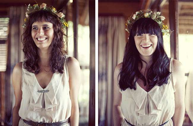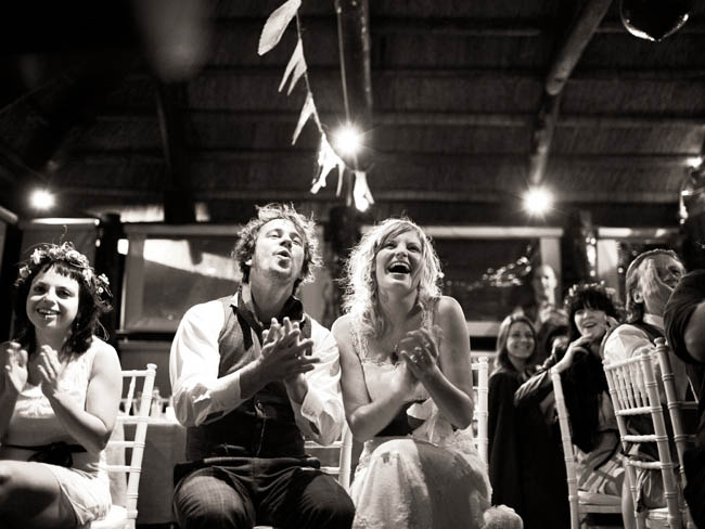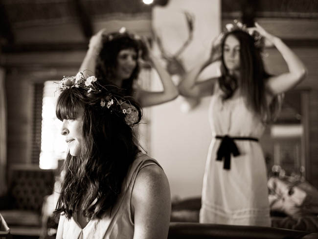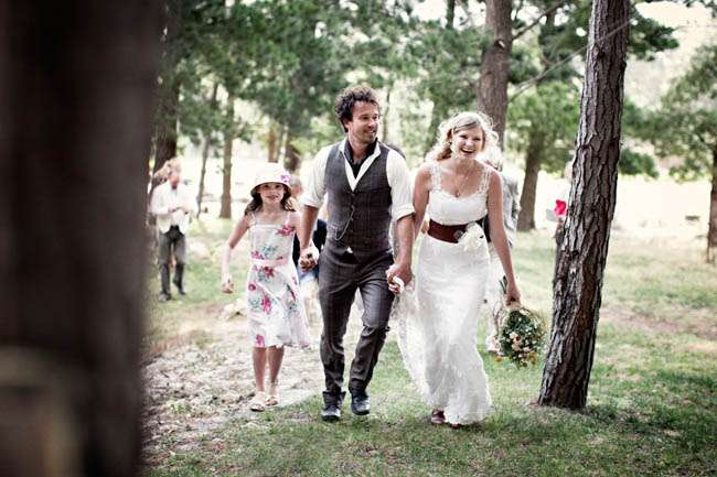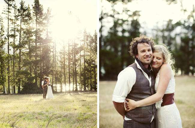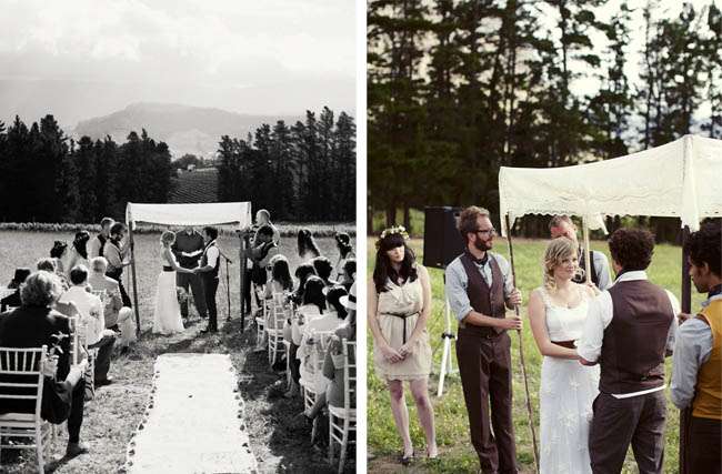 Kirsten and David’s beautifully folky, Cape Town wedding is the pure essence of why I love my Rock n Roll Brides. Pretty much their whole wedding was crafted from either second-hand or vintage items, and the majority of the details were hand-made. They had home-made pie instead of a wedding cake and they put together all the centrepieces and flowers (bouquets & bridesmaid’s headbands) themselves. “We pretty much made all the decor, even the tablecloths and runners,” Kirsten told me. “We had so many friends helping us the month before and went a bit overboard with ideas, but it was so much fun! We also made sure (almost completely) that we had finished everything we wanted to do before the last week so that we could spend some good time with all our friends, and made it a big celebration.”