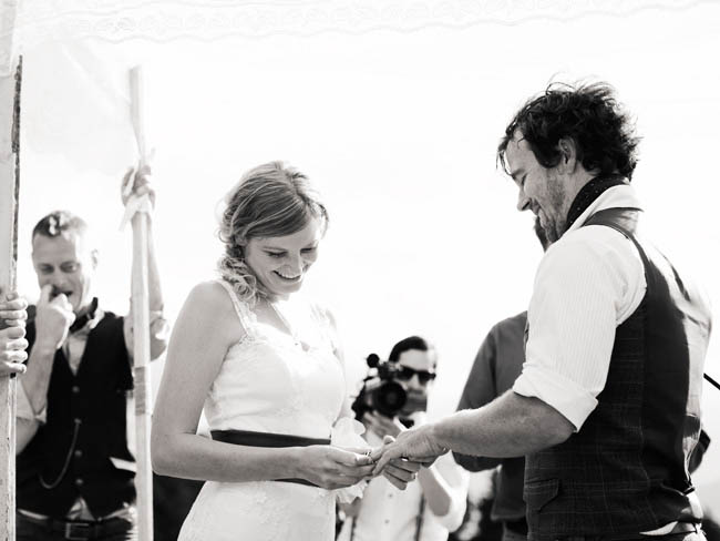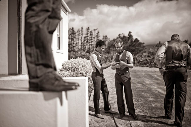 Kirsten wore a second-hand dress that a friend gave her with leather Oxfords on her feet. All of the jewellery she wore was found at various markets and antique stores. For David’s outfit, he went and picked out his own material at a fabric shop with his friends and then they all drove to Mexico (David is from San Diego) and found a cheap tailor to make his suit! “Of course he left this to the week before he moved to South Africa,” Kirsten laughed, “so he only got to see if it fit him the week of the wedding! Mexicans can tailor good!”