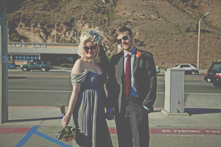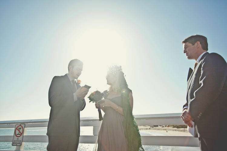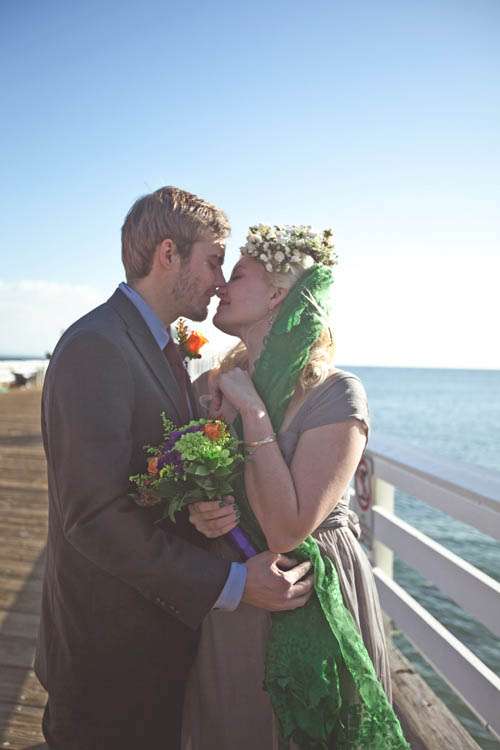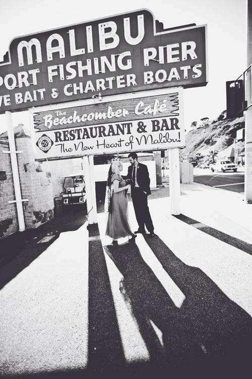 “In October 2010, Theis was finally able to return to the US on a fiance visa. We wanted our wedding to be intimate and beautiful, a relaxing day on which we could celebrate our greatest dream coming true: being together. We had initially planned to have the ceremony in Griffith Park, but our desire to have dinner at Saddle Peak Lodge (saddlepeaklodge.com) made us decide to change the location to the Malibu Pier, a beautiful place that Theis and I had visited together several times in the first few months of our relationship. It turned out to be the perfect setting, very calm on the day before Thanksgiving. In the company of my parents and sister and our friend Bill Handley, we were married on the pier. We read the Walt Whitman poem “To A Stranger” to each other as vows.”