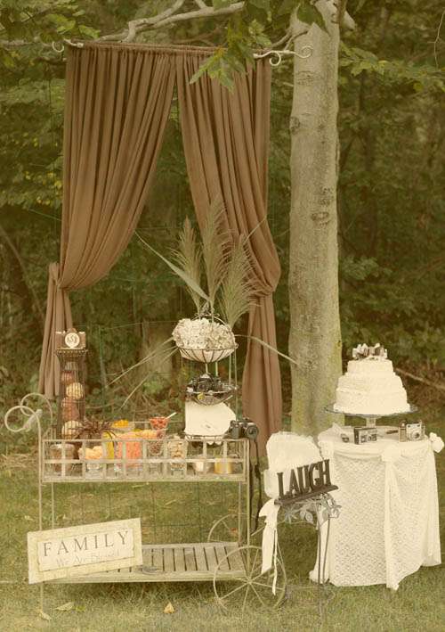 The colour scheme for this shoot was peach, brown, black and cream and featured many DIY projects in order to provide some DIY wedding inspiration. Tiffany and Brenda both got stuck into various DIY projects including the camera chocolate mold dessert favours (such a cute idea!), the floral arrangements – (they picked wild flowers from the side of the road), the cupcake film sleeves (they used real film to create cupcake holders), the candy bar bags that read “A Picture Perfect Ending – Sweet Dreams”, the roll of film for guests to take away (tied with charm “To Love and to Cherish”) and the veil created from tulle and a feather, purchased from a local fabric store.