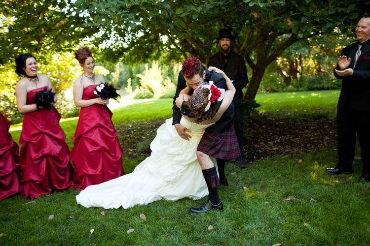 “The first time I met Lacy was over 10 years ago in high school where we became fast friends,” photographer Daniel Stark told me. “Unfortunately, she moved before our senior year and we gradually lost touch. When it came time to plan her wedding she walked into a bridal shop that happened to have my business cards. I was thrilled when they asked me to photograph their fun, edgy, rockstar wedding.”