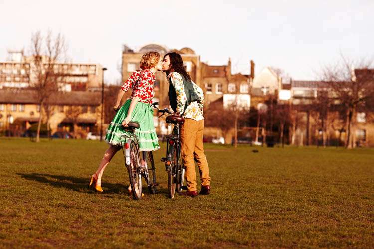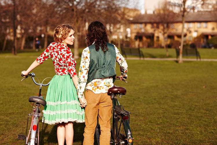 “The theme of their shoot was ‘vintage sweetness’. Their wardrobe was full of vintage pieces but Kane bought Star a sewing machine for Christmas so she wanted to sew something for the shoot (very sweet!). She bought and old vintage dress and transformed it into the lovely green skirt you see in the picture.”