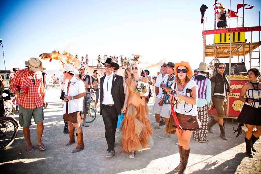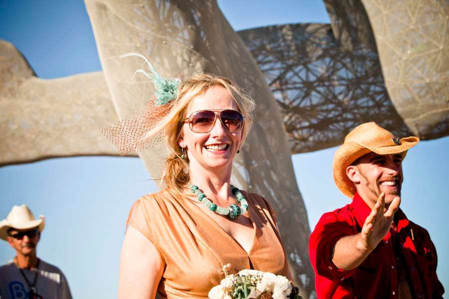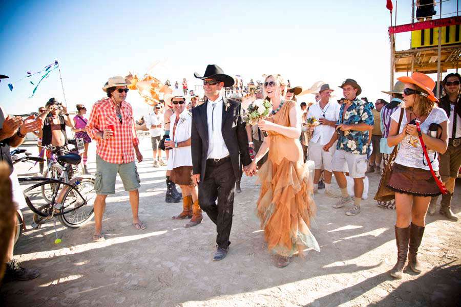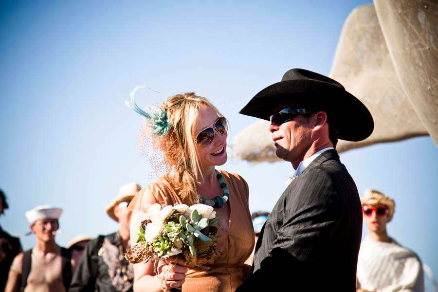 Tara & Travis met at The Burning Man festival in 2007, so where better than to be wed than the very festival that brought them together? The ceremony, which they wrote themselves, took place under the Bliss dance statue in the middle festival and was performed by a close friend of the couple.