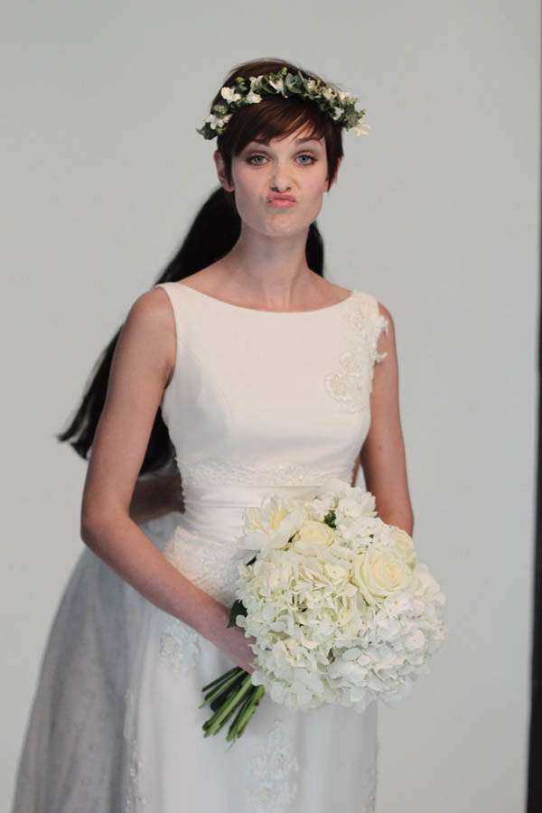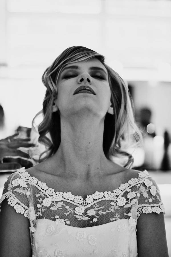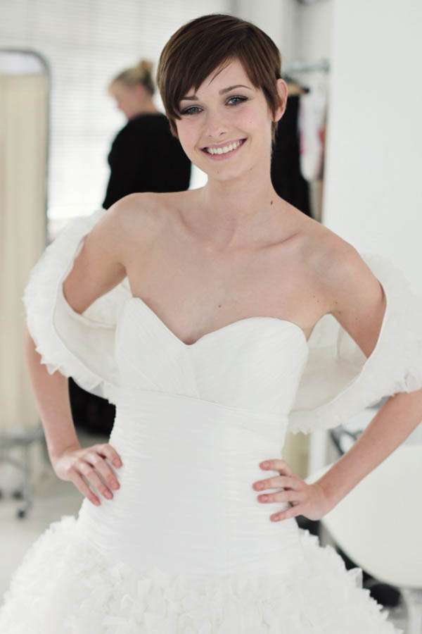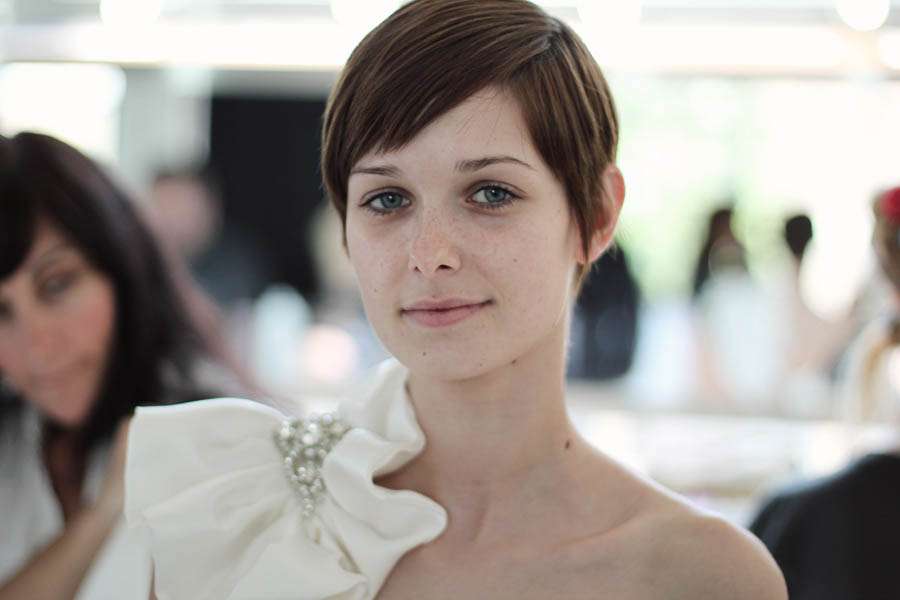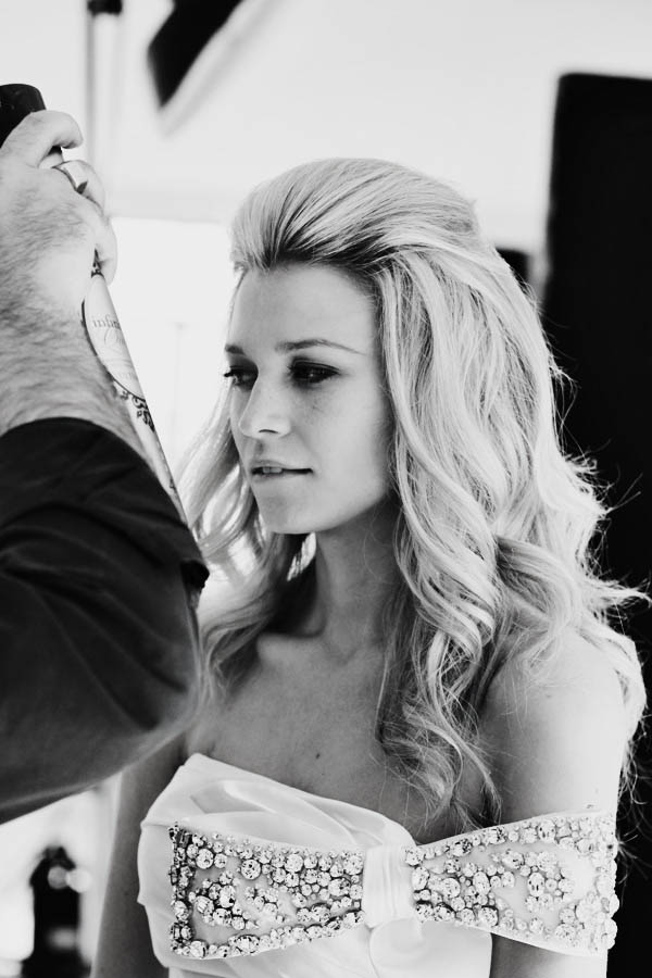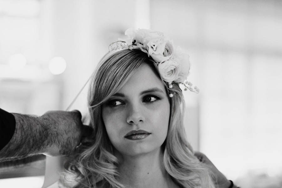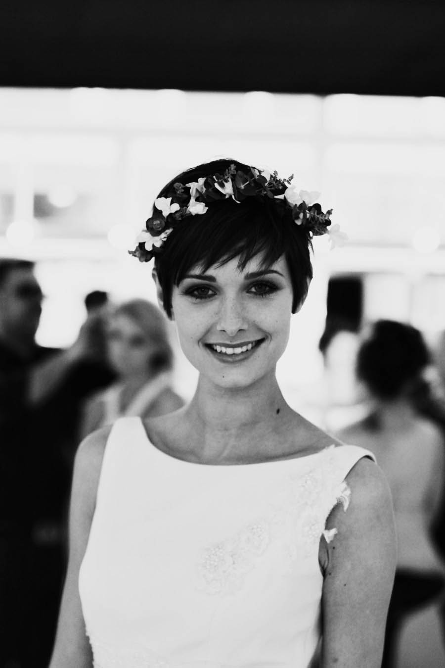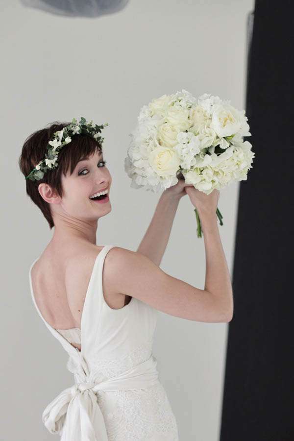 Catherine told me that unlike wedding blogs, the styling and content of magazines has to be appropriate to appeal to the mass market, but that she was keen to push boundaries in whichever ways she could. For example one of the models, Rose, had a super short pixie crop hair style and they’d never had a bride with such short hair on the cover before. Also for one of the shots (each model had 2/3 outfits) Sev styled Kirstie’s hair with a plait going across her forehead – again, something that to you and I might not seem completely ground-breaking, but for a mainstream wedding magazine this was a style that again, had never been put on a cover before.