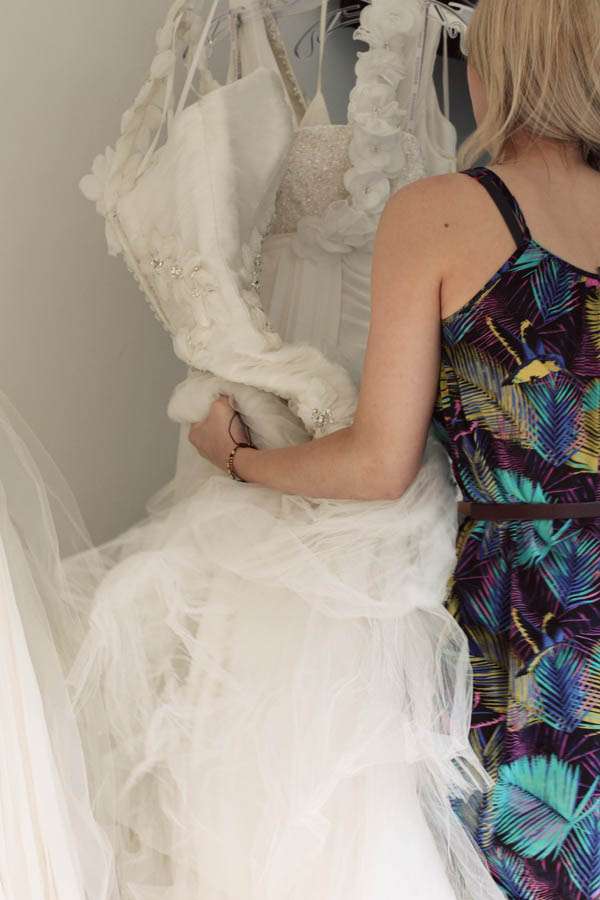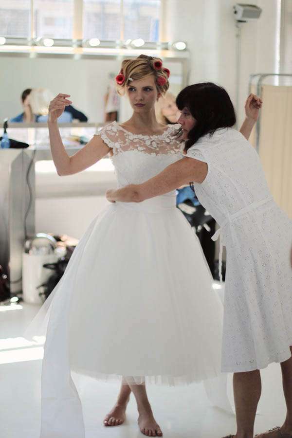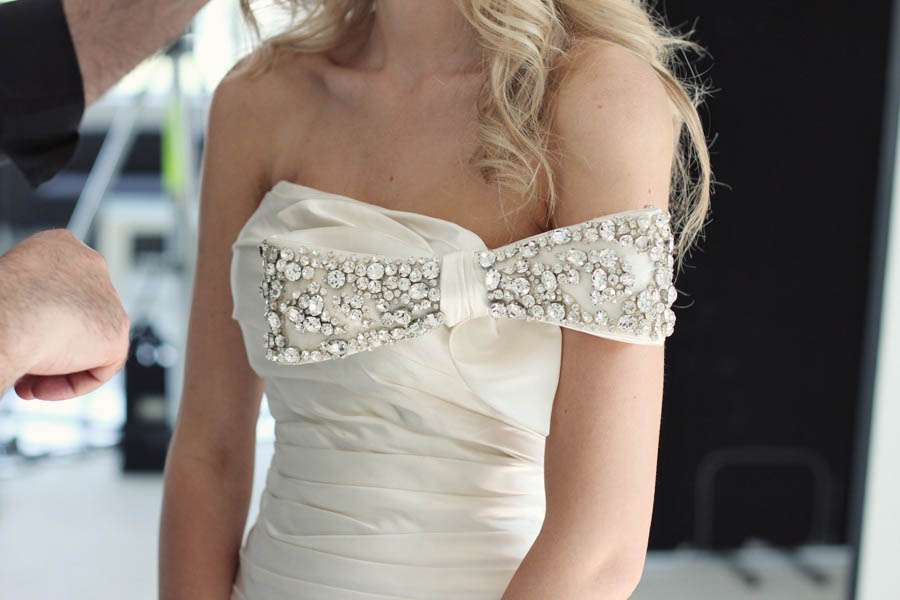 The magazine intern Billy and press agent for Butler & Wilson, Jo, showed me the dresses and accessories for the shoot. They’d brought what seemed like enough to fill a whole bridal shop as Julia, Catherine and stylist Claire were deciding on which looks and dresses to go for then and there. It was all very organic and a total team effort went into how each style and shot should look. There as certainly no ‘Devil Wears Prada’ feel about the day! I even got to give my input into which dresses and accessories I liked (for the record Ruth’s Candy Anthony number – pictured above – was my favourite.)