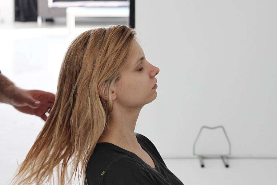 Stylist Claire puts the finishing touches to Ruth’s first look