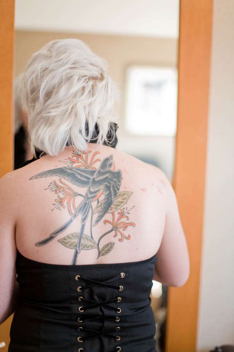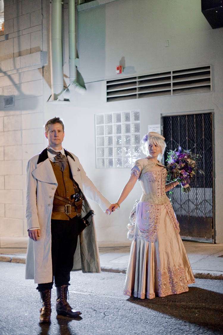 “I think the most Rock n Roll thing was us, how we approached the whole day with humor and a little literary wit,” the bride concluded. “If the wedding had to be a musical genre I would call it folk-punk, or Steam-folk. We set out to have an amazing day and it turned out better that you could ever imagine. We wanted to live the quote “Love is that condition in which the happiness of another person is essential to your own.” Because it was about us, not a huge affair with doves and dollar dances and stuff being thrown about, we were determined to avoid bad DJs, crazy relatives we’d never met before, flower girls, ring bearers, punch fountains, ballrooms, chicken or steak entrees, towering confections or bored guests who couldn’t wait to leave. There were casualties of this of course, hurt feelings, traditionalists, and others, but at the end of the day it was about Chris and Courtenay celebrating their lives together, be happy for them or not that’s all there is.”