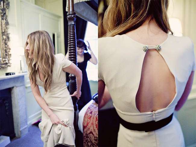 “So, we embarked upon a series of evenings with lots of red wine, sketching dress ideas. We took inspiration from anything from Katherine Hepburn movies to Alexander McQueen, endlessly repeated the mantra that would later haunt us as we rushed to get it finished 3 days before the wedding – ‘don’t worry, it’s just a dress’. We laugh about it now, and refer to it as ‘it’s just a #!@^ing dress’!, and I know I will never be able to repay all the sleepless nights she had over it. We found some beautiful silk crepe in McCulloch & Wallis, a fabric shop in central London that has been operating from the same premises since 1902. The fabric had apparently been sitting untouched in the shop for 20 years, so it was a lucky find! I bought some 1920’s rhinestone buttons on Etsy that we used at the back of the dress. My belt buckle was an amazing 200 year old Georgian paste buckle found at Camden Passage Antiques Market, worn on a black velvet belt.”