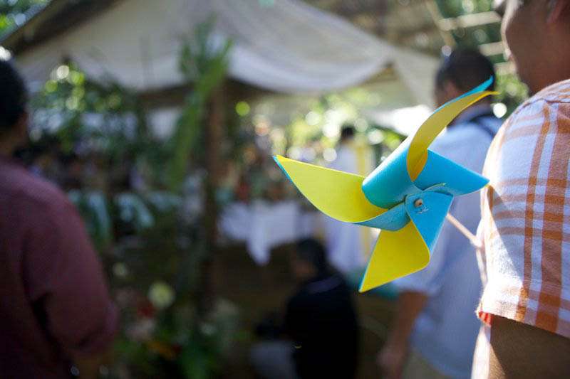 “Almost all the details were DIY,” Kei continued. “From the invites to the cord used in the ceremony which was made from different yarn colors and rope. My head piece was also DIY, the bridesmaids carried fresh picked lillies while the groomsmen brought pinwheels while walking.”