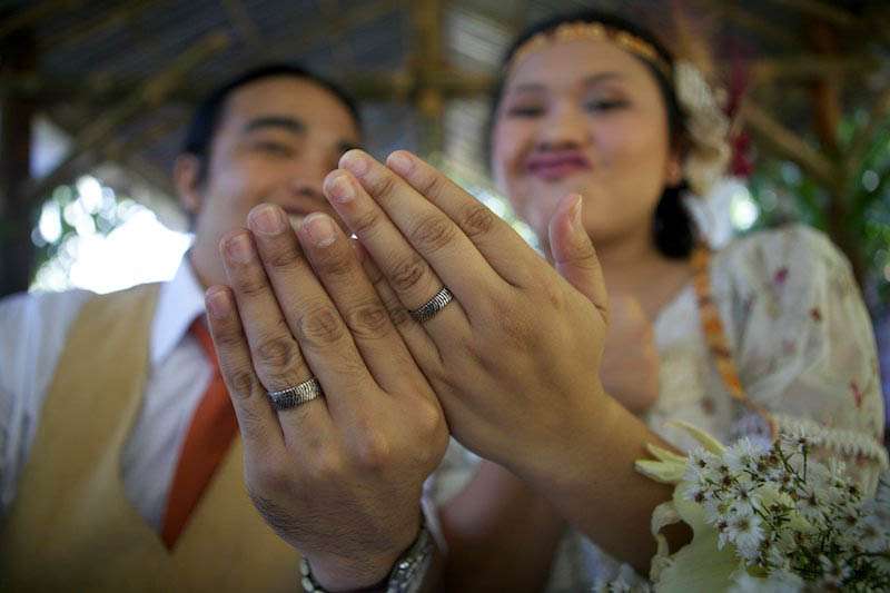 The wedding ceremony took place the following morning and was followed by a tree planting, a traditional breakfast and fun activities. At lunch the guests were treated to a “Boodle Fight” (a military style of eating where guests sit on long tables and the food is served on top of the banana leaves) lunch roasted pig, grilled fresh fish, steamed veggies and ensalada (salad with tomatoes and salted eggs).