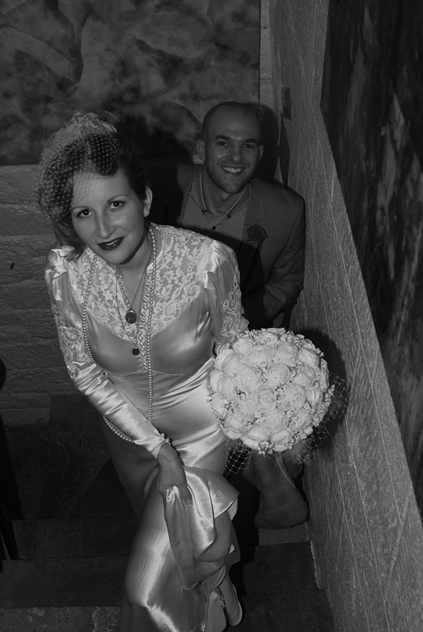 This beautiful, vintage-inspired wedding came about after Lucy proposed to Andy on a trip to London. “I took Andy away to Tower Bridge London, to stay in a 5 star hotel on Valentines Day 2010,” the bride told me. “He kept saying,’You’re not going to propose are you?’. I said ‘No of course not, don’t be silly’. Then as we were walking back to the hotel under the bridge by the dolphin statue, I placed a ring box shaped like an orange in his hand. He looked at it and said ‘What’s this?’ with a scared look on his face. And I said ‘Open it’, then ‘Will you marry me?’. The colour drained from his face, I cried, he said ‘Oh, I was planning to propose to you, and I started saving for a ring, and what is everyone going to say?’ I just said, ‘Look, I have saved you the bother of saving your money for months and months. Let do this our way’.”
