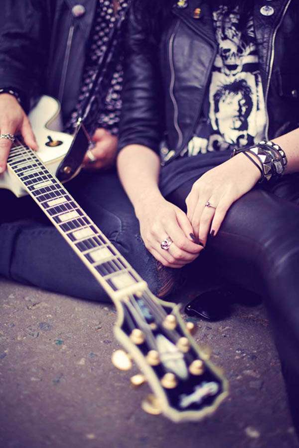 “We love the iconic images of rock couples such as Sid and Nancy, Johnny Thunders and Sable Star, so wanted to incorporate this vibe too. We got inspiration from bands like the Kills, who as a male/female duo have some great looks for engagement shoots it turns out! We have a whole heap of album covers from The New York Dolls to Black Sabbath and Guns N Roses engrained in our memories so that all added to the overall look too!”