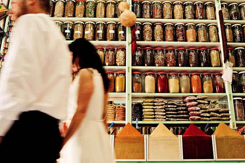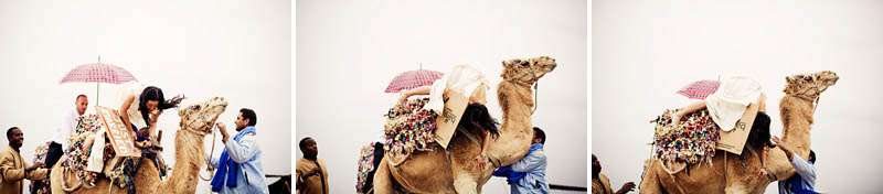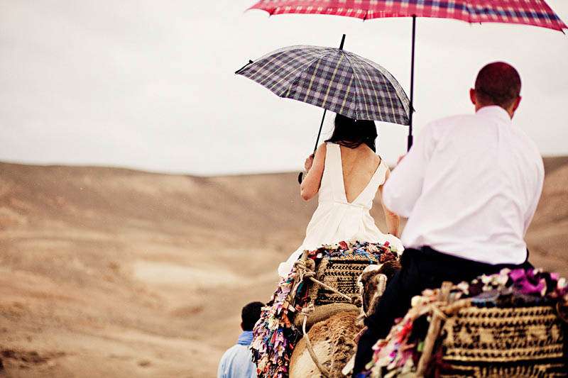 “Even though we didn’t get married in Morocco we still wanted our wedding photos to be taken there… I was dead set on having wedding photos on a camel in the desert. It was the perfect location for our wedding/honeymoon…it’s exotic, romantic and the vibrant colours and people made a perfectly contrasting backdrop for our wedding photos – even though it was raining.”