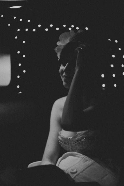“So we decided to take this sour lemon news and turn it into some really awesome lemonade. The kind with booze in it and lots of crushed ice — the gnarly, jagged kind — and get our fly asses married in Vegas. For real this time. We planned the trip in the three short days leading up to our Vegas wedding – which was starkly different from our carefully planned ‘first’ wedding. Everything just sort of fell into place this time around. We wore the same wedding attire from our July affair, and I had since changed my hair color and style pretty drastically from our first wedding so I had a blast playing with the new look. I got to wear my Zooey Deschanel uber bangs and an enormous flower on top of my head. I felt funky gorgeous and fun.”