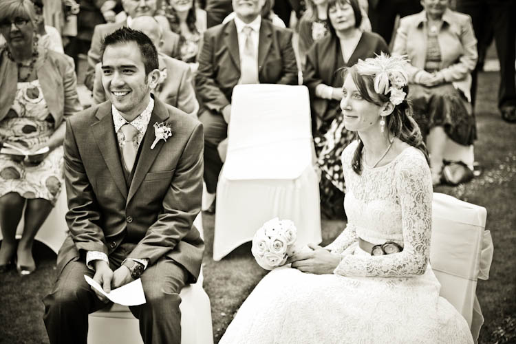 The DIY elements really made this wedding stand out, and kept the day super personal. Laura continued, “I don’t know if Rich or myself are particularly Rock n Roll (in fact, he wouldn’t let me have a live band, thinking it was too try-hardy ‘cool’) but we just did our days how we wanted. Putting together a DIY wedding was stressful though, don’t get me wrong. But we could not believe how generous friends and family were with their time and energy. My mum and Rich’s mum did all the food: good, heart portions of homemade curry, chilli and fishpie. The ‘waitresses’ were all neighbours who donated their time to make sure the booze didn’t run dry and the plates were cleared away. Richard’s Mums are Buddhists and so our outdoor ceremony was influence by that and also humanism.”