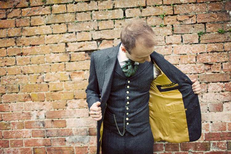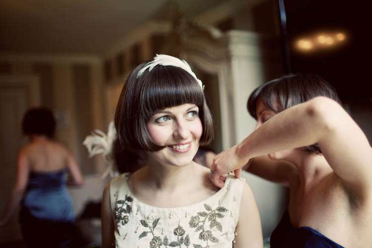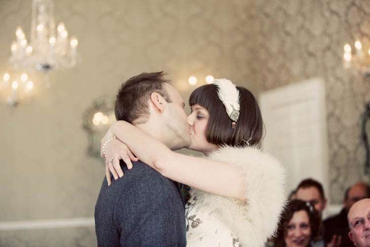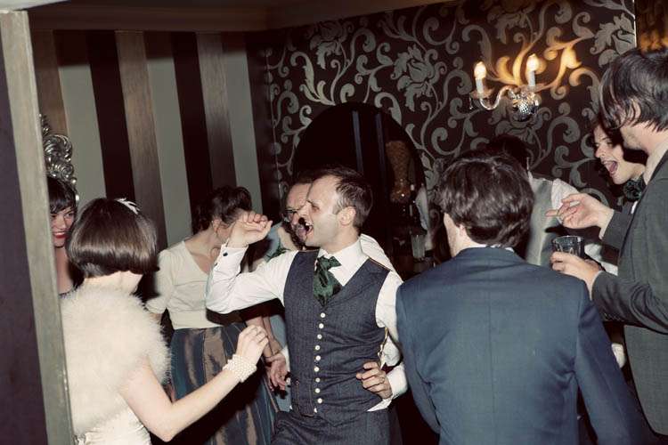 “We wanted our wedding to be very ‘us’ and for everyone to have a really great time,” Katie told me. “It was brilliant – we just had all the stuff, the people and the music we love around us all day. We love art deco, the 1920/30’s swing era, mismatched stuff, sparkle… We’ve both worked in theatre and like a bit of drama. We made all our invites, place names, table names etc. Michael is a photographer so we tried to use lots of photography throughout. We just kept everything very casual and relaxed and friendly. We ignored everything people told us we should do and stuck to what we like – I think every wedding should be personal. We also wanted to make sure that everyone looked like themselves and felt really good. Michael hadn’t seen my dress but had said to me that he wanted to be marrying me as he knew me and not me looking like somebody different!”