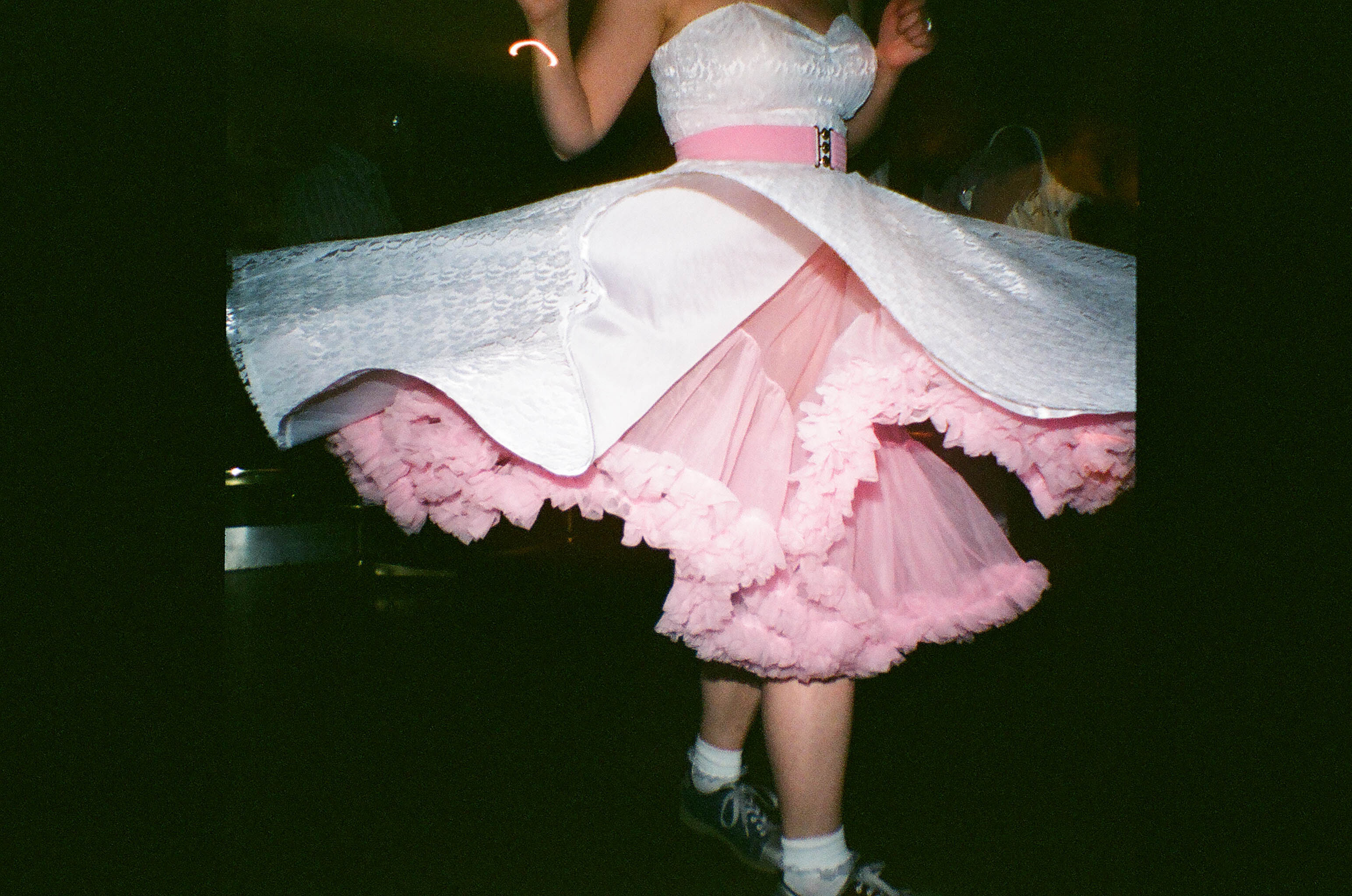 “I still think it was a different dress; it’s got a vintage feel and I loved the lacy train as I had never seen it on any other dresses that didn’t cost a fortune. But with the reception in a bowling alley I was worried that it was really impractical. So I trotted off to Vivien of Holloway, found a fabulous white lace 50’s style number and bought a pink poof to go underneath.”