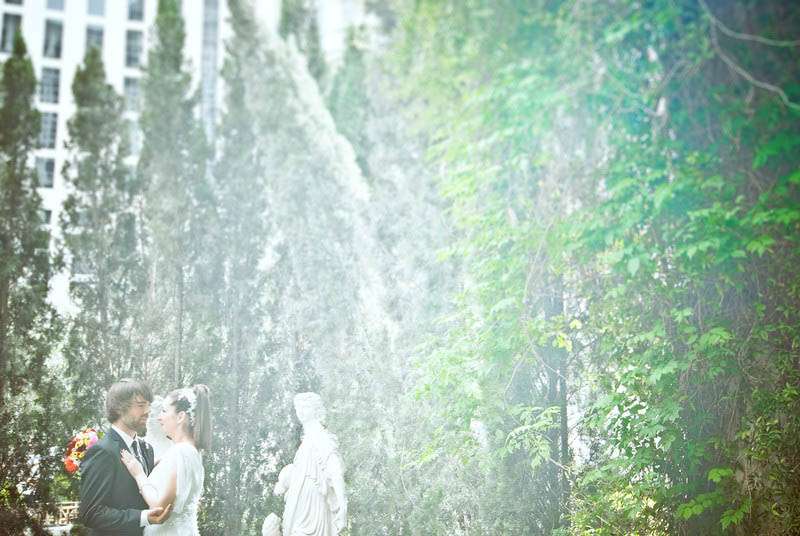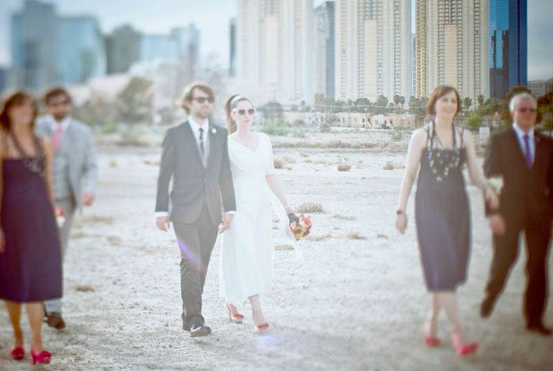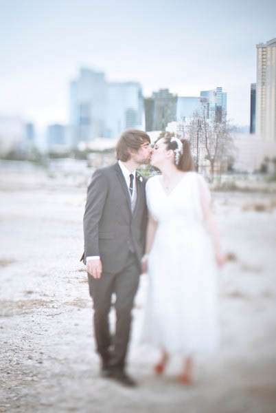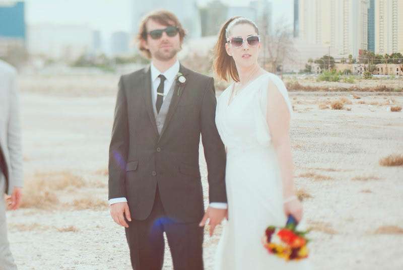 Lori & Tom were married in Las Vegas in a casual and laid back wedding. They kept their day simple and significant to them, as Lori explains, “We live in London and met at Coachella music festival in 2007. We wanted intimate (we were thinking 35 people, we ended up with 54!) and casual, a bit different and more of a party than a wedding. No ice sculptures, receiving lines, or head tables. We just wanted to have a big party with our family and close friends. My family live in Vancouver and Tom’s family in England, so we decided that if guests were going to travel, then why not make it a big holiday in Vegas? And to top it all off, in meant we could go to Coachella with our closest friends before the wedding — bringing everything full circle.”