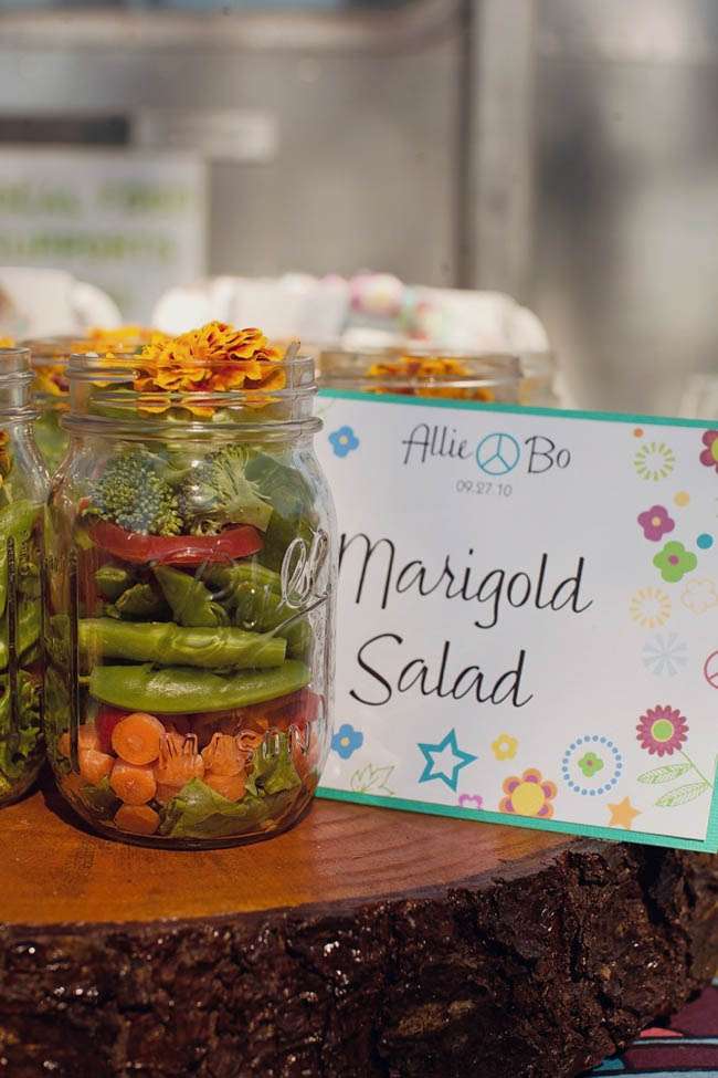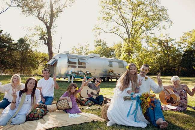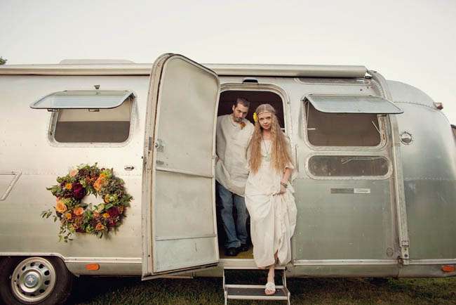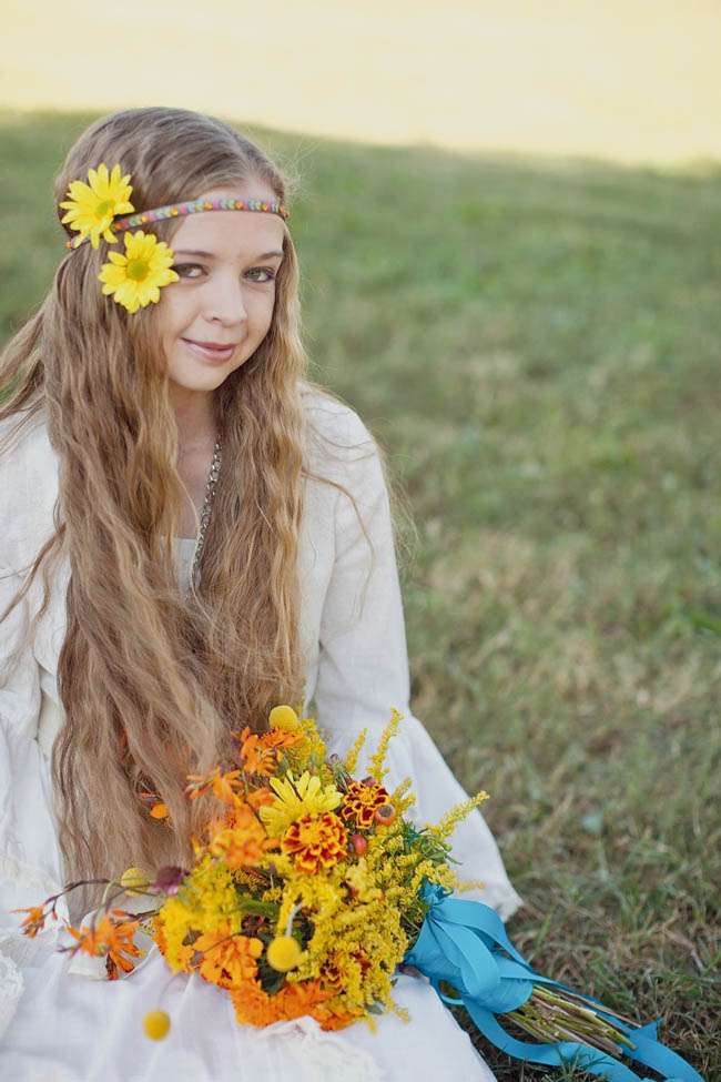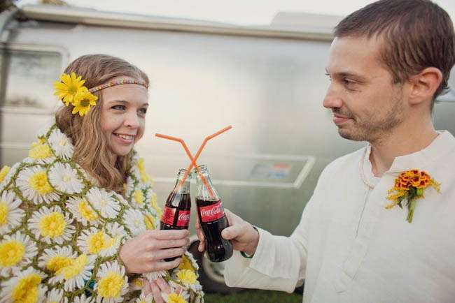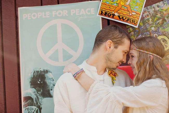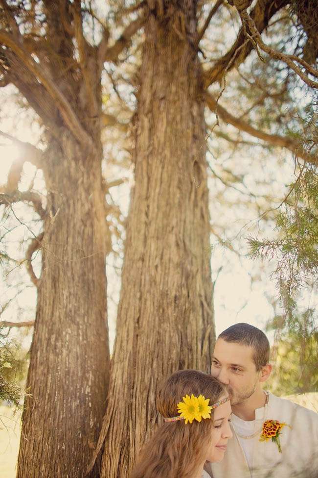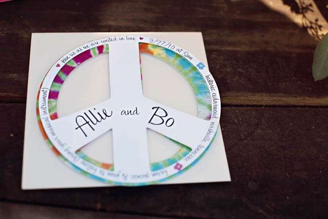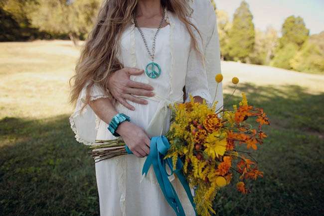 As bride Allie explains, “I like to consider myself a modern day hippie with a bohemian bent. I wanted something sort of whimsical and vintage for my wedding. I grew up with stories from my grandmother of the passions of the hippie movement of the late 60’s and early 70’s. She encouraged me to be original and taught me an appreciation of nature and an independent sense of style. Bo and I love to hike and camp and we eat locally grown food, so it was important for us to plan an environmentally friendly wedding.”