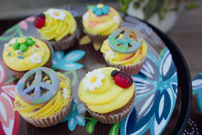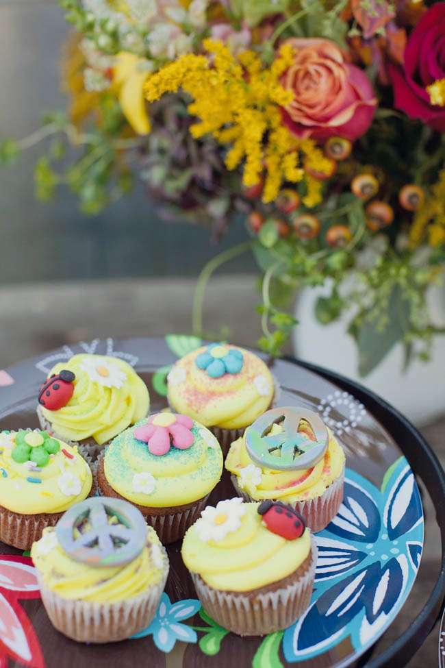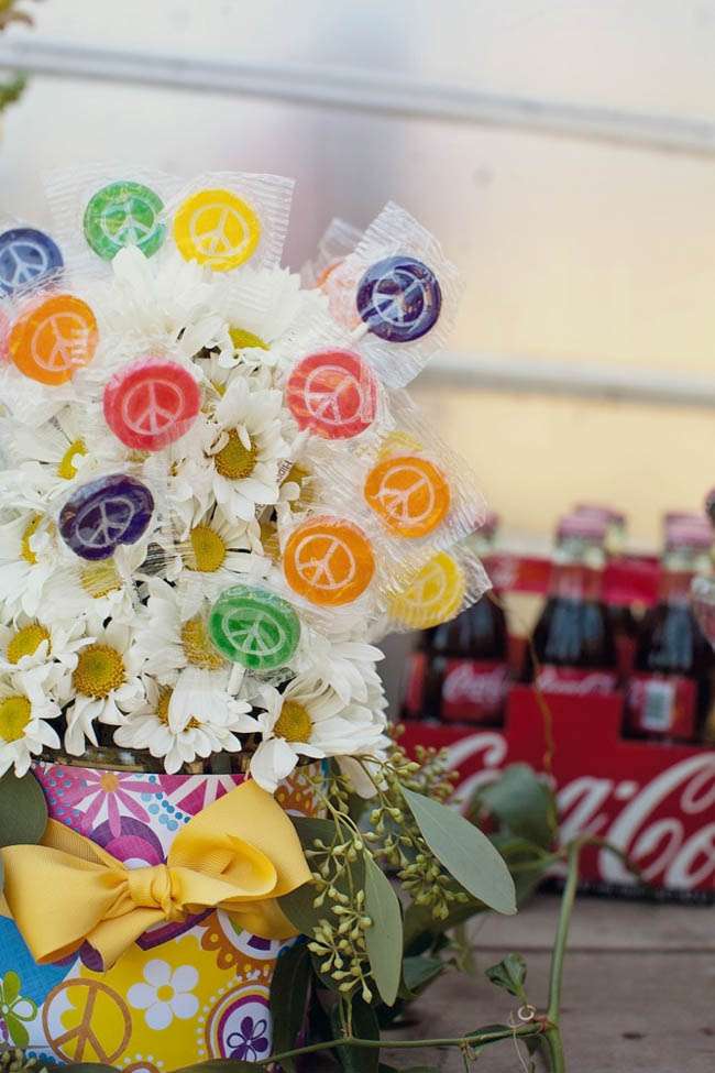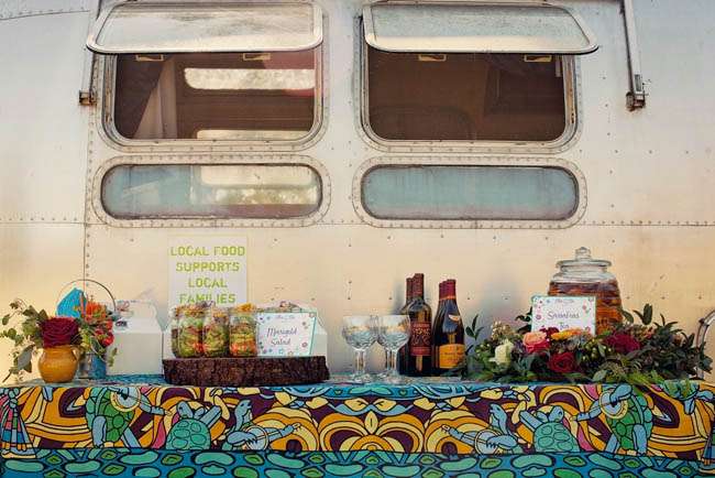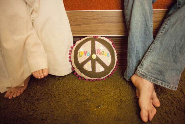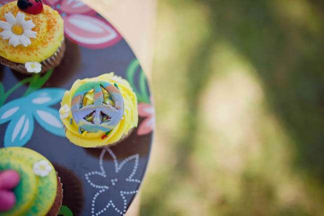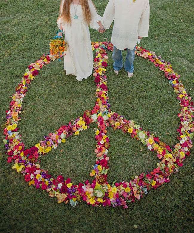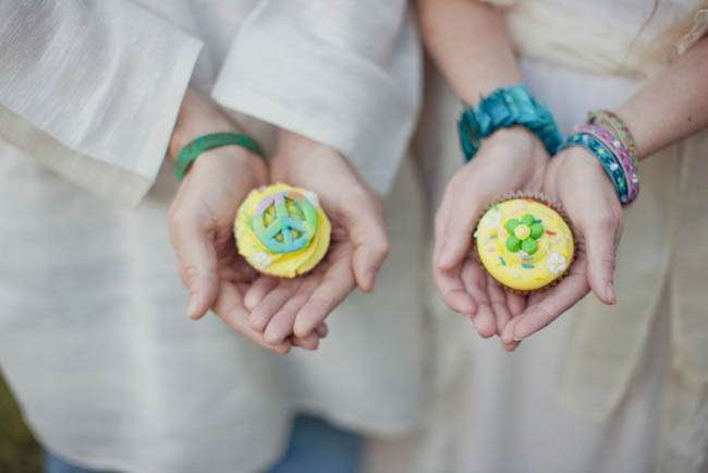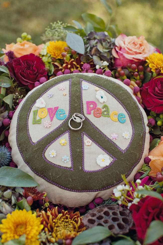 “Also freshly picked field flowers incorporated in my bridal bouquet and unique floral designs (we literally helped pick our flowers right off the property grounds!) and a fun and whimsical icons with a timeless message – like peace signs, vintage posters and ‘love rocks’ favors.”