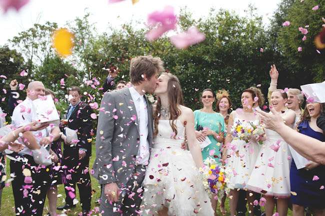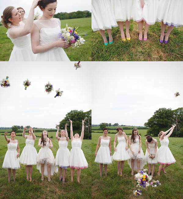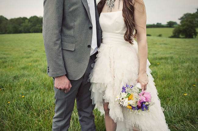 “So we found a venue that would accommodate our wishes for less than a billion pounds (seriously what is that all about?) and went from there. Eventually (way too late!) I discovered blogs like Rock n Roll Bride and the endless sources of inspiration out there for alternative weddings and our wedding started taking shape. The one thing we did get from bridal magazines was our colour scheme. We were pretty uninspired by the limited colour palettes we saw in most wedding pictures, until we saw an Indian themed wedding full of rich, vivid colours and we knew that was something we’d like. It evolved during the planning to pink, purple, yellow and turquoise, I had to spray paint the bridesmaids shoes to coordinate!”