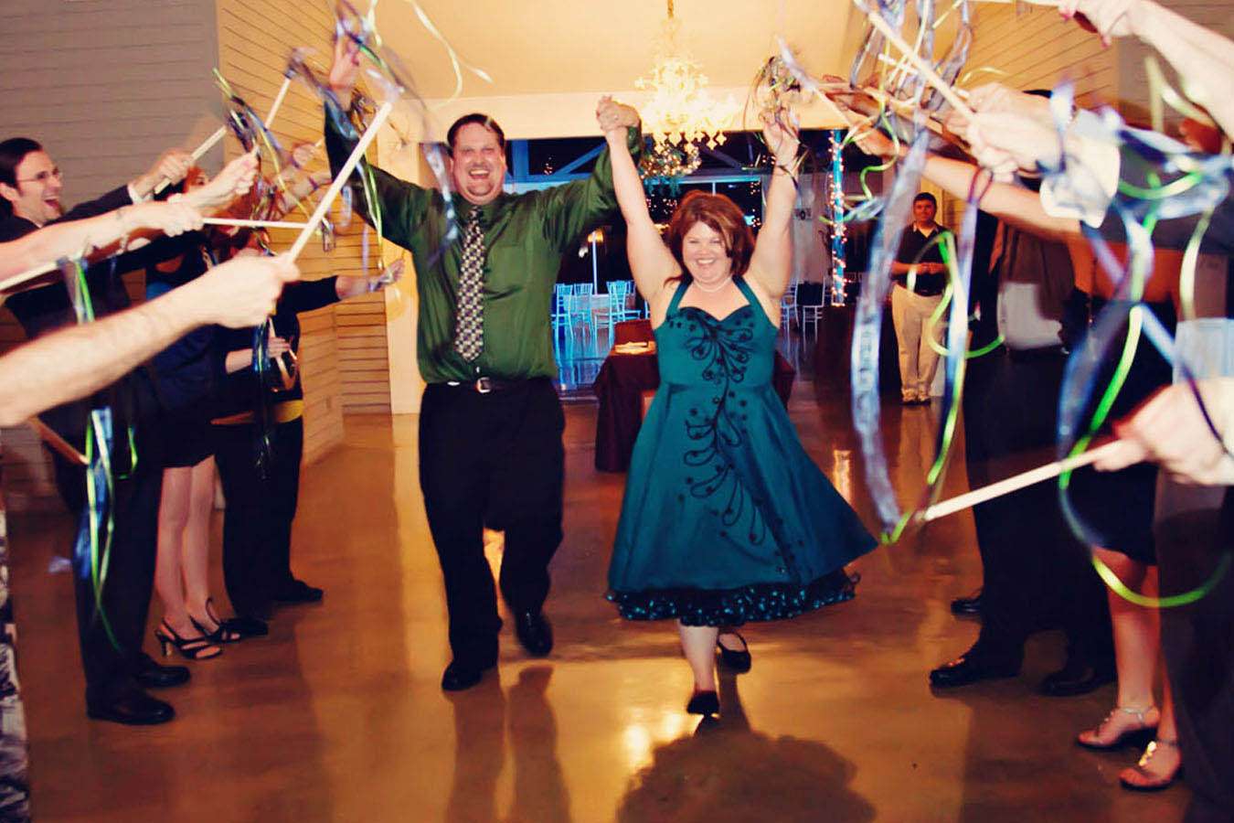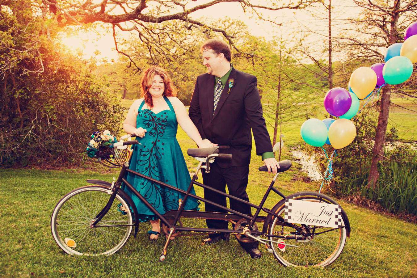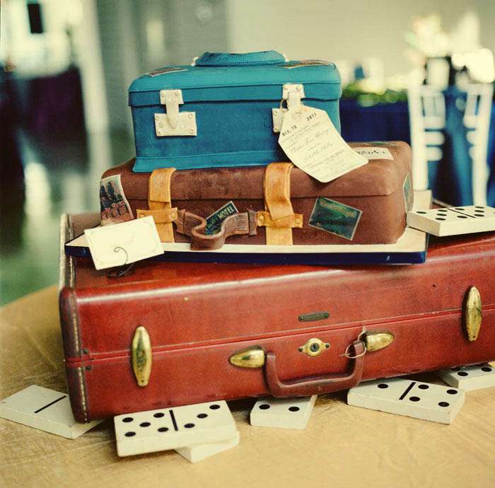 Tina & Scott’s travel and craft themed wedding took place at The Greenbranch, Texas. It was predominately a DIY wedding influenced by the couple’s travels. “It was mostly a do-it-your self peacock inspired wedding with a splash of anything vintage was a blast,” the couple told me. “Our invitations were an image of a vintage suitcase with travel stickers of places we have visited. This connected with our first date; a “geocaching date”. We not only wanted to share our journey as a couple with our guests but also encourage them to have an adventure of their own. The wedding favors for the evening were uniquely trackable geocaching coins designed by us.”