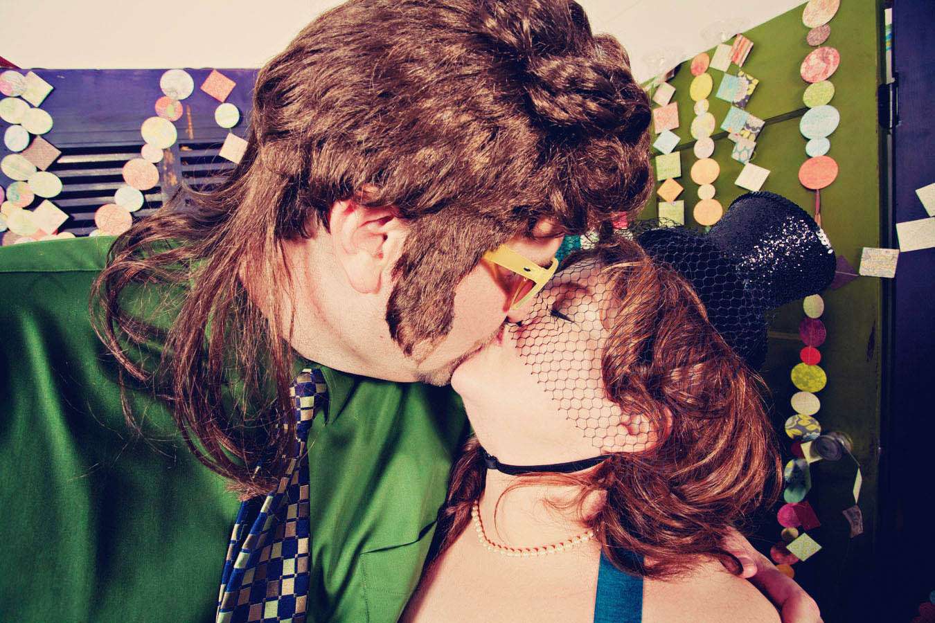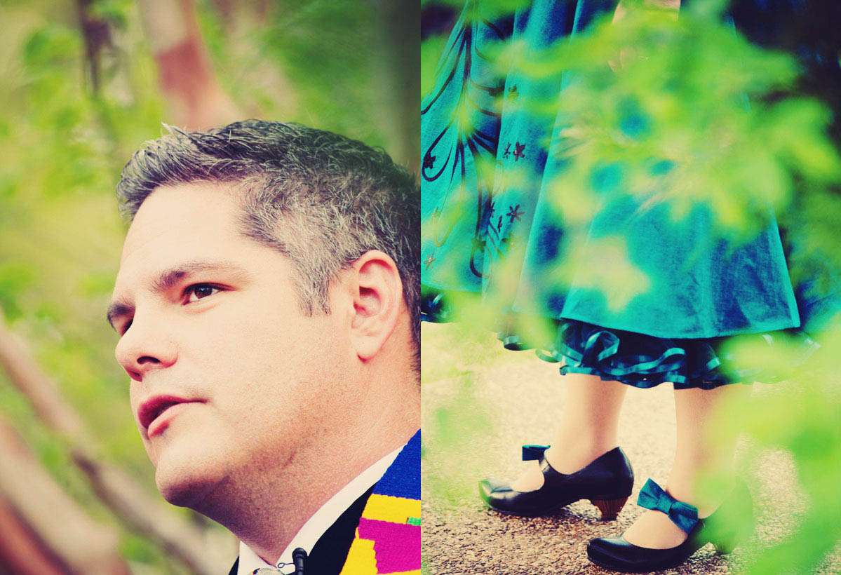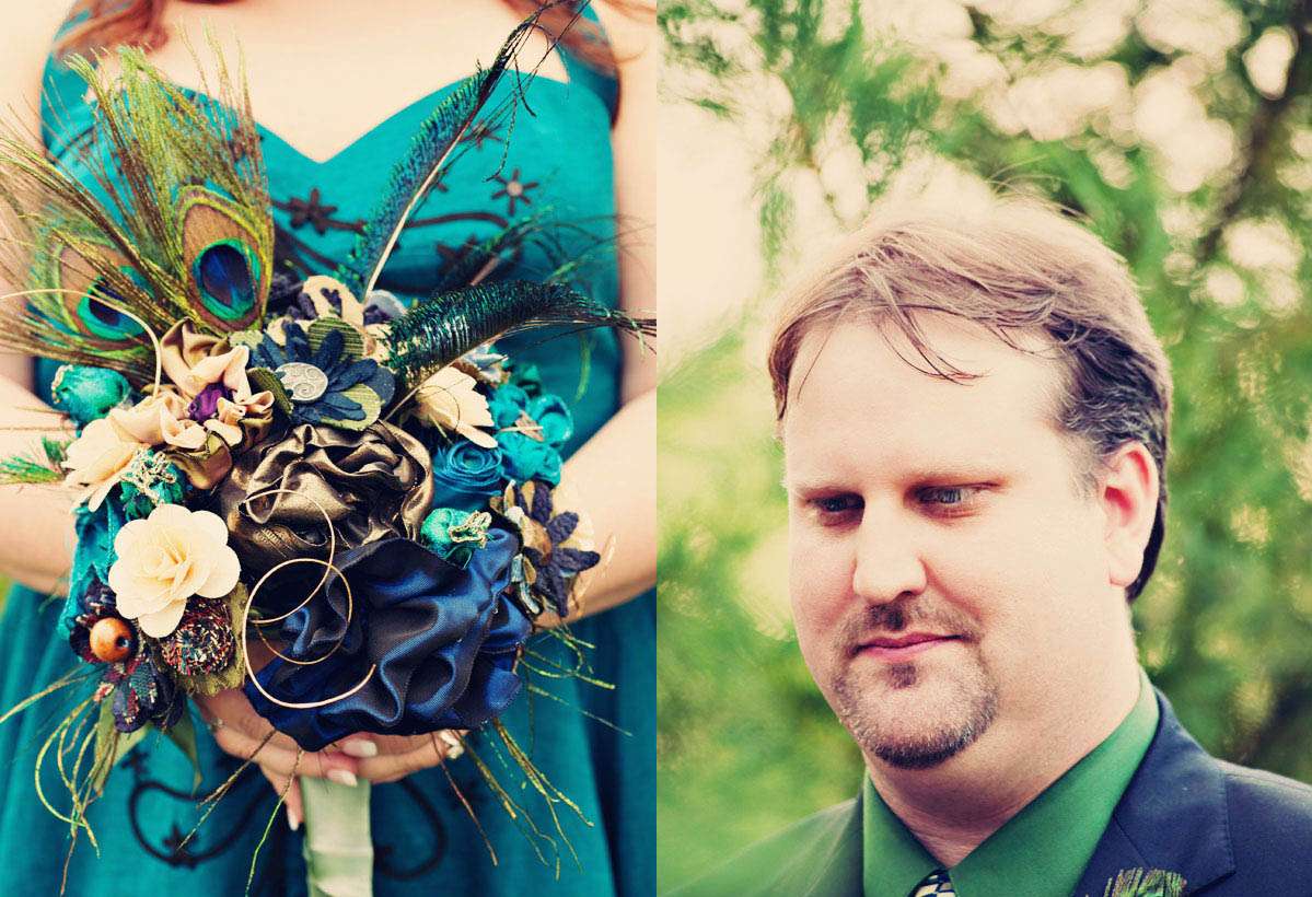 Tina’s wedding dress was from Whirling Turban (who I’ve featured on Rock n Roll Bride before). Tina was pretty much able to design her dream dress from scratch and so chose a custom peacock pattern on the front of the dress and a dramatic green colour.
