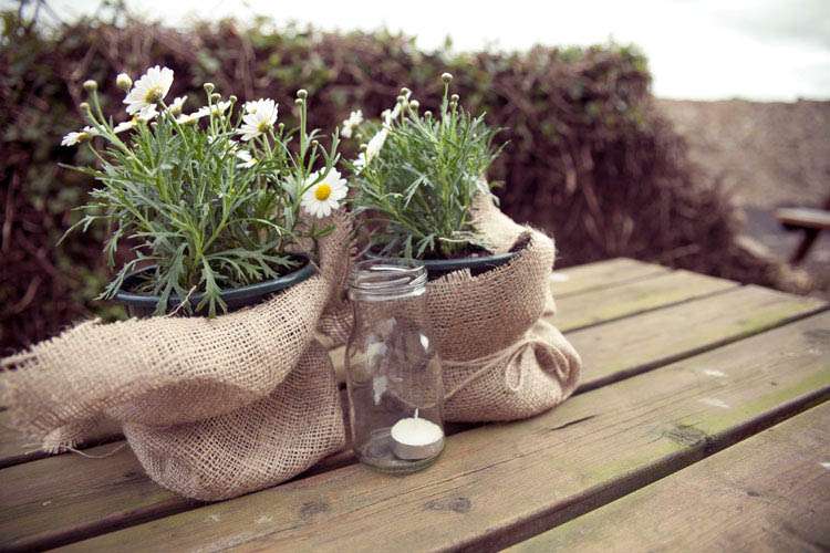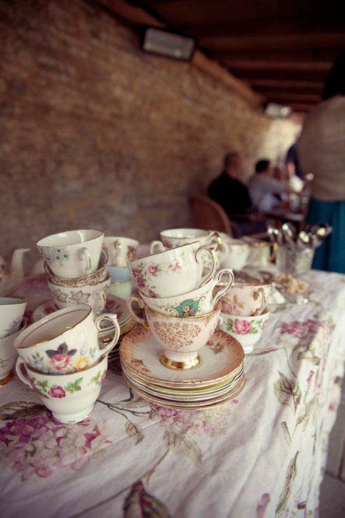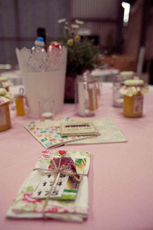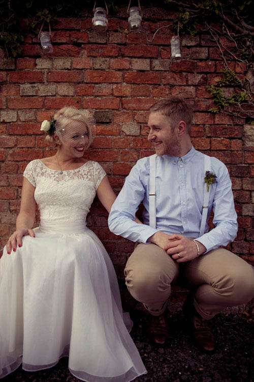 “Our theme for the reception was vintage village fete, so we really put our families to task in order to get that community feel about our day! My aunty made all the bunting, napkins and jam jar toppers. The whole family spent 6 months prior collecting jam jars, sourcing vintage lace to wrap around them and finishing with twine to give it a farmyard look. The card basket is actually my grandparent’s picnic basket found in their loft 2 months prior. And all the old couples pictures were gathered together to celebrate couples we’ve known in the past and present who represent marriage success stories. We wanted something to aspire to!”