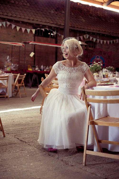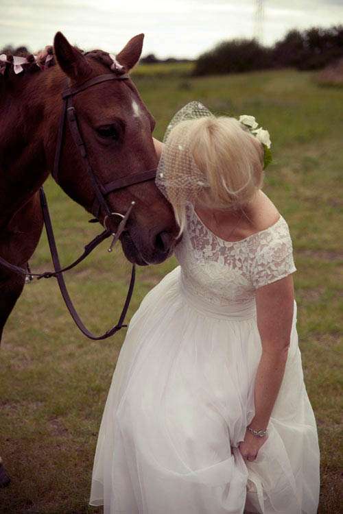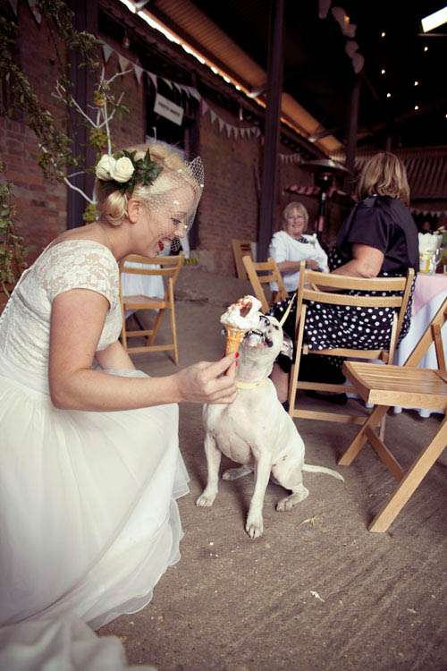 “Sunday was a flipping blast!” she continued. “We were very clear on this day: Get a barn. Fill it with fun. Have a party. We’d seen some beautiful wedding ideas (some of which we borrowed from Rock n Roll Bride in fact!) so took inspiration from them and added our own Very English twist. Highlights for me were the pony rides, watching our dear friend Miss. Jayne Hardy sing the Joel + Victoria mini musical and feeding our dog Glory a Mr+Mrs ice cream sundae. Woah fun!”