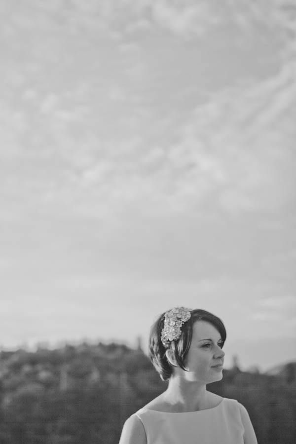 Instead of a traditional wedding dress, Claire opted for a dress by Dessy, who specialise in bridesmaid’s dresses. “I tried on a variety of ‘classic wedding dresses’ and hated every one,” Claire told me. “I had cut out an image of a dress with a bateau neckline and pockets and instantly fell in love with its laid back yet elegant appearance.”