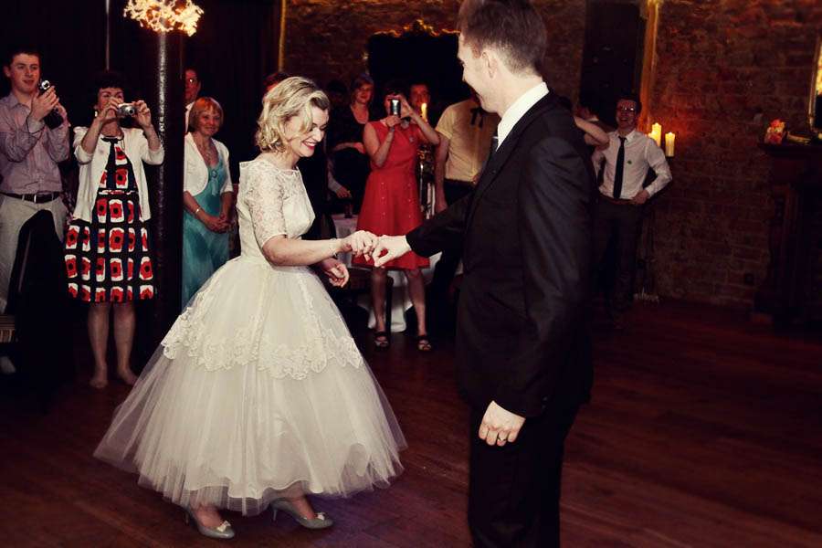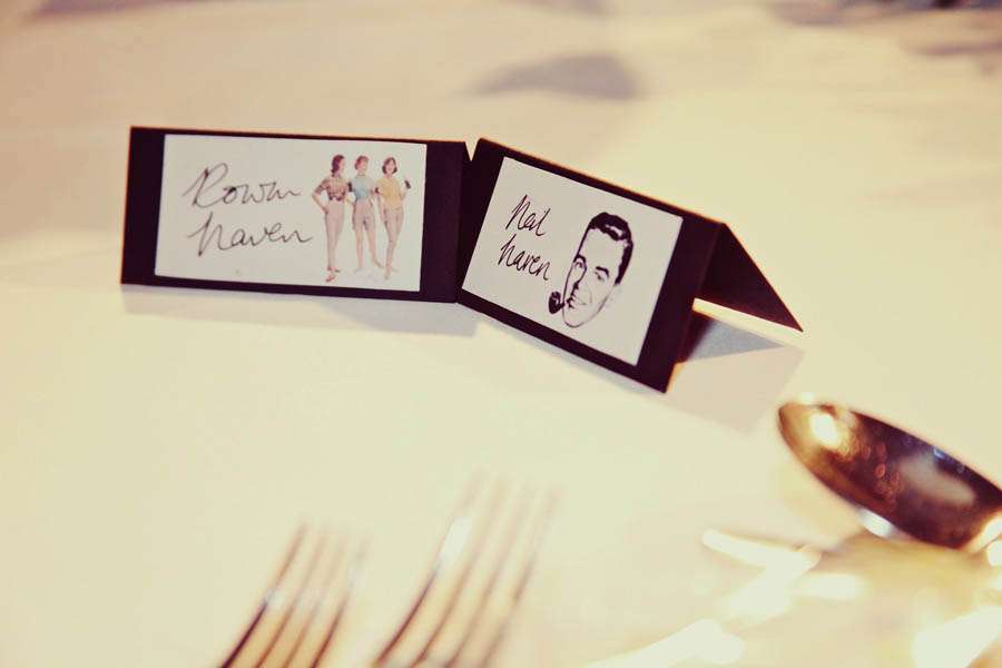 The overall theme of the wedding was driven by the couple’s love of 50s and 60s music, fashion and design. “We are huge fans of Mad Men and we wanted the wedding to reflect something of the style of that period. We also thought that all guests, both young and old, could have fun planning outfits and throwing some groovy shapes on the dancefloor. One of our best memories is seeing Neil’s granny jiving under the discoball to Ray Charles, ‘Hit the Road Jack’.”