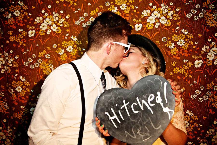 “My friend Brian had given me a badge maker for my birthday so I decided to make everyone a name badge, colour-coded to their table. The ladies’ favours were iced shortbread hearts, made by talented friend Laura. The guys’ favours were chocolate cigarettes, which were in keeping with the Mad Men influence and made for some great photos! Whilst browsing numerous wedding blogs, I came across the idea of the instant photo guestbook. I bought a blank album from Paperchase, a couple of cheap fujifilm instax cameras and film from eBay and my wonderful bridesmaid Sarah (who is rarely seen without a camera) snapped all of the guests in various poses and they each wrote a few words next to their photo.”