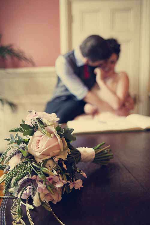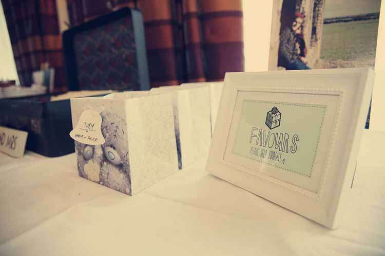 Once I was all ready, and Graham had called me to say he was we set about orchestrating a lovely mini-shoot within the wedding day. Sassy had had the idea of photographing our first look (our reactions to seeing each other all dressed up for the first time) and thought where better to do this then in the reception room that had been dressed by our florist Miss Moles that morning? So, I limped up the spiral staircase that led to our ‘room in the sky’, and saw Graham standing by the window with his back to me. When Graham turned around it was such a special moment – he looked beyond adorable, and I knew then and there that I was making the best decision of my life by marrying him. We explored the room, taking in all the beautiful flowers, giant cupcakes, and sweetie buffet, as well as the photos from our engagement shoot that we had displayed on mini-easels around the place.