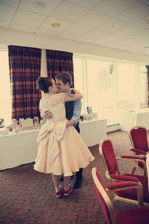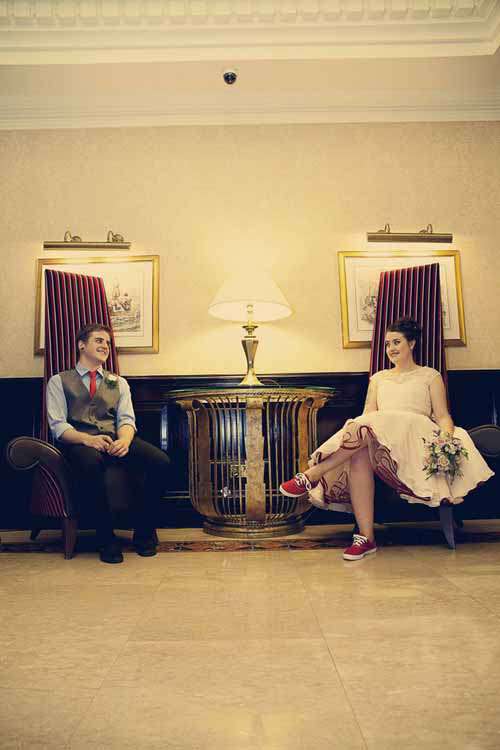 Although I didn’t have traditional bridesmaids, my two best friends Lois and Claire were with me the whole time while I was getting primped and preened from all angles. The helped me into my dress and garter, and even did up my shoes for me (I broke my foot three weeks before the wedding, so had to hobble around the whole day. Also, suddenly the gorgeous Irregular Choice red shoes Graham had purchased me as a present were so impractical I had to ditch them, and cram my swollen foot into a pair of red Ked plimsolls!)