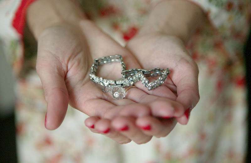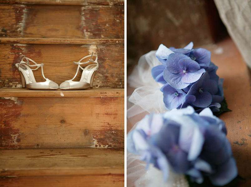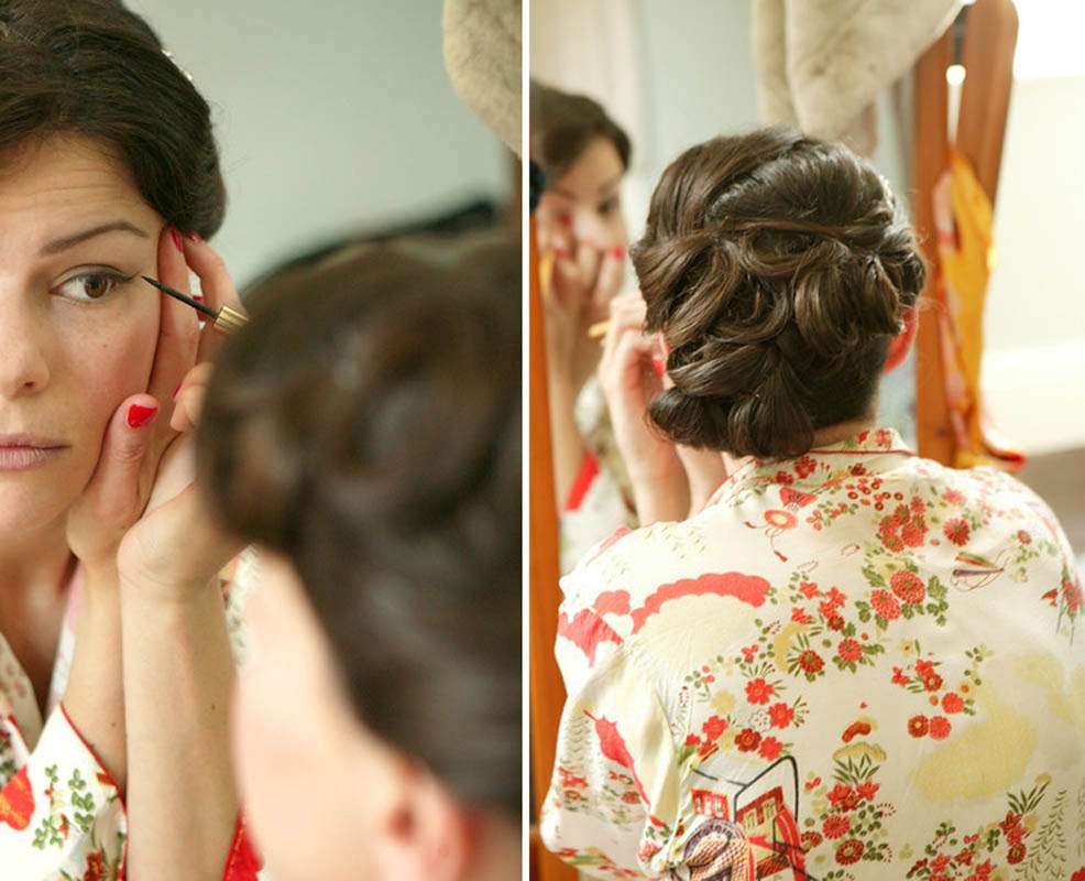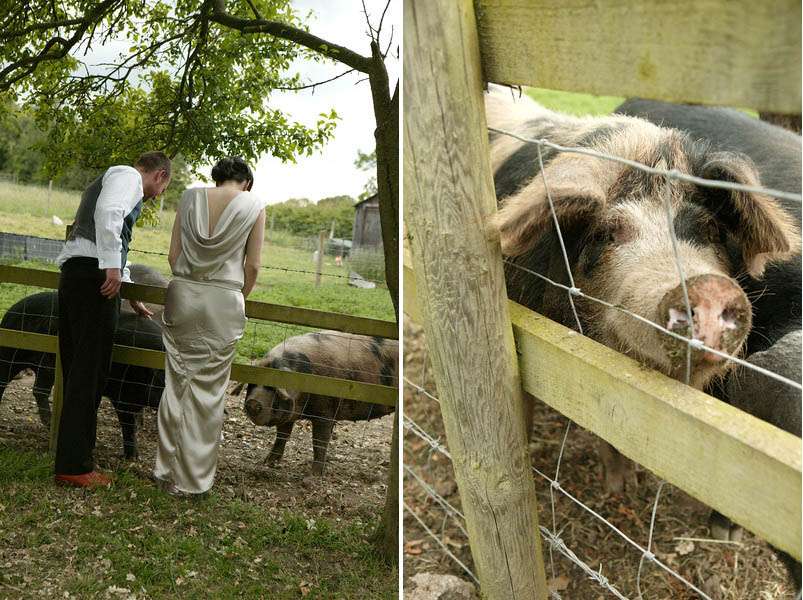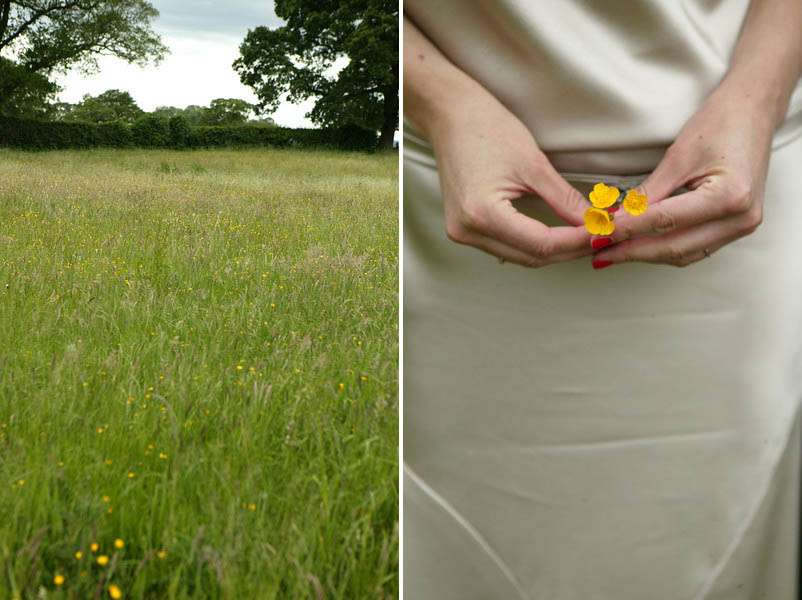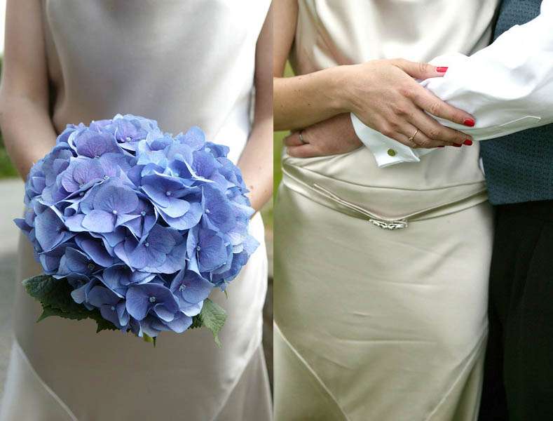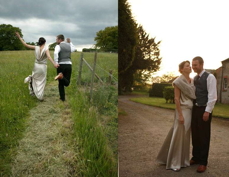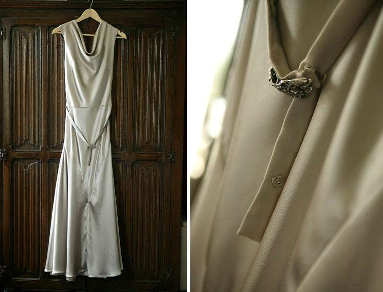 The bride’s vintage-inspired dress was made by a friend and it turned out just as she wanted, “My bridesmaid Sally designed and made my 30’s-inspired frock. I’m very lucky to have such a talented friend. We bought the silk on Berwick Street in London. I knew I didn’t want white and when I saw the grey silk I fell in love with the colour, it had an old Hollywood look. She finished it off with a belt using an art deco dress clip for the buckle.”