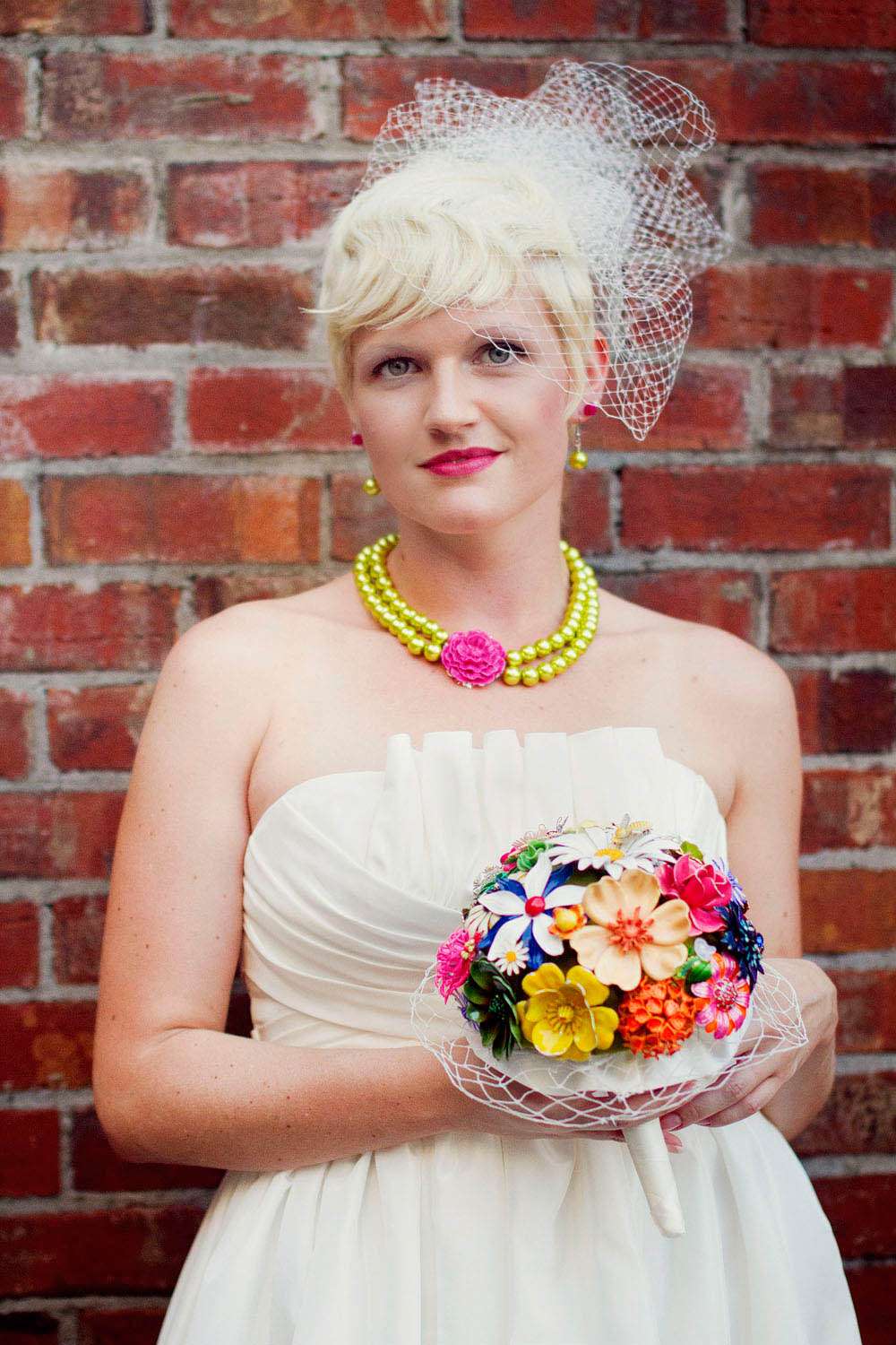 “I had a vision from the beginning that I wanted something wildly eclectic, but with a Nashville-esque retro vibe,” the bride told me. “I was a terrible shopper for dresses, etc. Nothing in any bridal store felt like “me”, so I ended up starting from scratch with artisans all over to put it all together. I have Etsy to thank for a lot of it!”