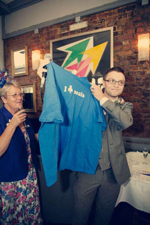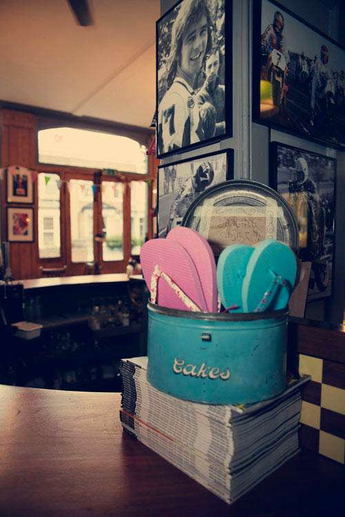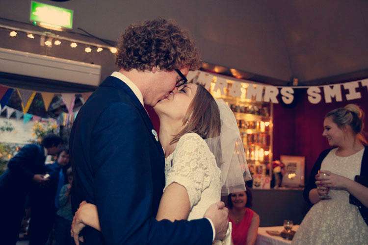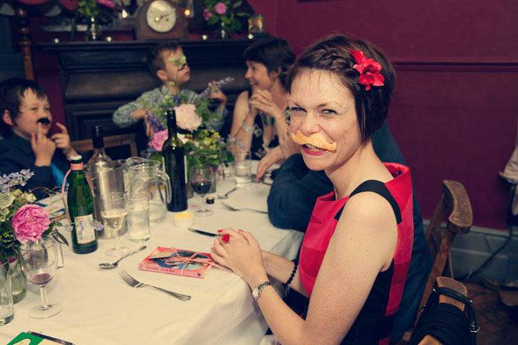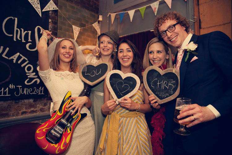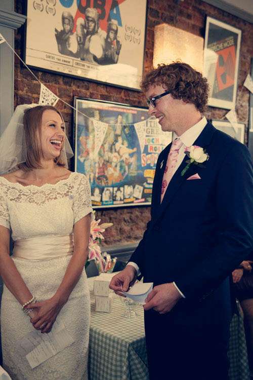 “Lots of people said that it was a very relaxed, fun wedding and I think that’s because we stayed true to ourselves and tried not to care what anyone thought,” concluded Lou. “On the day, the things that I’d worried about were my favourite part – walking down the aisle towards Chris was amazing and the ceremony was truly the happiest time of my life. Close friends did readings and my sister’s boyfriend Ian performed ‘It Must be Love’ by Labi Siffre. It was just perfect and really uplifting and I’m so glad that we followed our hearts. Our families and friends were amazing with helping us out. My mum organised the reception flowers – she brought down loads of flowers from her garden and did the arrangements the afternoon before the wedding, with help from Chris’ mum. And our families also helped us decorate the pub on Friday afternoon. Chris and his brother were out in pouring rain, putting up fairy lights in the garden, while the mums did the flowers and me, my dad, sister, auntie, my new sister in law Laura and one of our best mates clambered over chairs to pin up the bunting.”