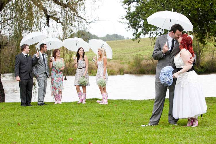While a wash-out may be some couple’s worst nightmare, Michelle and her fiance Trevor certainly made the most of their rainy South African wedding…in fact they rocked that rain like I’ve never seen before! The wellies, multiple white umbrellas and incredible backlit portraits made me always wish my wedding had been so damp!