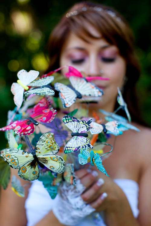The bride wore a dress Sears which she got in an outlet store for just $70. She also made her bouquet herself from paper butterflies, “I made my bouquet with florist wire and dollarama butterflies,” Irma told me. “I love butterflies and I didn’t want a real flower bouquet as many are so expensive. I was either going to bring a single calla lilly (my Mom’s favourite flower) or a bouquet made by myself with butterflies incorporated to it. Then I saw a magazine with a bride that had a bouquet of floating butterflies, and since I had thought about something similar, I decided to give it a try with my own materials and creativity.”
