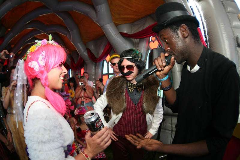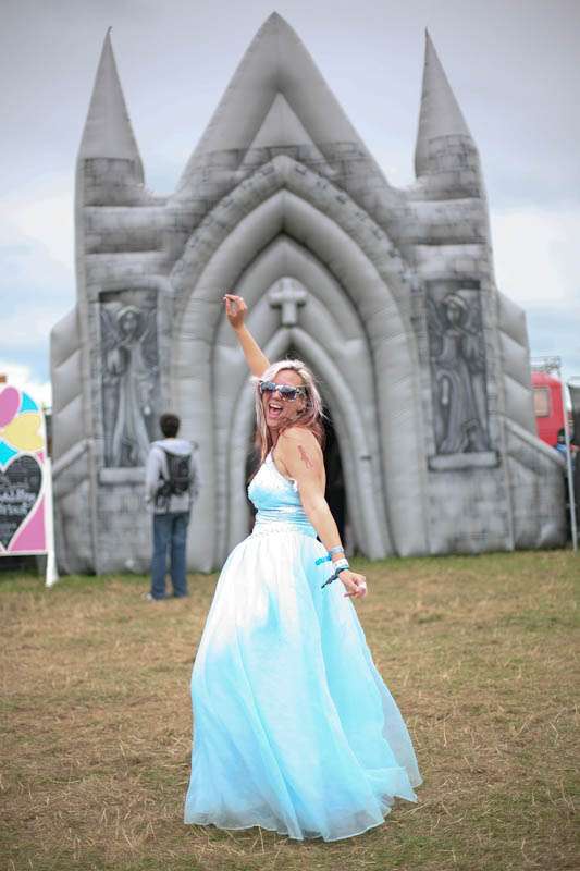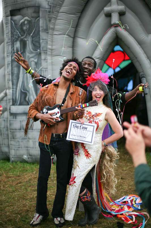 Taking place on the Isle of Wight for the past 7 years, Bestival music festival has fast become sinimomous with crazy antics, fancy dress…oh and a big dollop of awesome music thrown in for good measure! Each year it also plays host to the Big Love Inflatable Church, where couples can go to tie the knot. This year wedding photographer Chris Cowley was there to catch all the action!