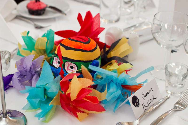 “We took inspiration from a variety of places – ideas from festivals and award ceremonies we’d been to, plus Day of the Dead and skull themed websites and blogs. I think what maybe made us Rock n Roll was that we didn’t have a formal feel to the day, and tried to create an ‘anything goes’ atmosphere so that people could just have a really good time.We tried to focus our budget on things that we actually wanted at the wedding and things that would contribute to a big party atmosphere rather than things like chair covers, posh cars and silver service food.”