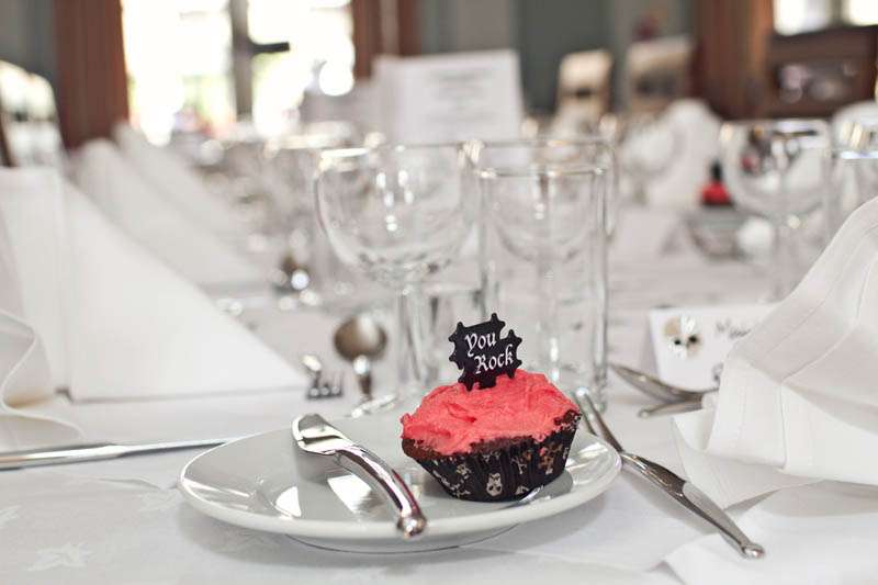 “As the wedding had a ‘Rockstar’ theme we thought it would be awesome to let people unleash their inner rockstar on stage (especially me, as I love rock karaoke and will use any excuse to get up and sing),” Julia remembered. “It seems we had more people with inner rockstars at our wedding than we thought, including aunts and uncles who leapt at the chance. The DJs were friends of ours who are rock/metal DJs that we met through our involvement with Download Festival (where we had out joint hen and stag do’s!) and who were fortunately happy to play our whole, long range of song requests, from thrash metal to power ballads and Lady GaGa. The band and DJs were all awesome, and really helped create the party atmosphere we wanted.”
