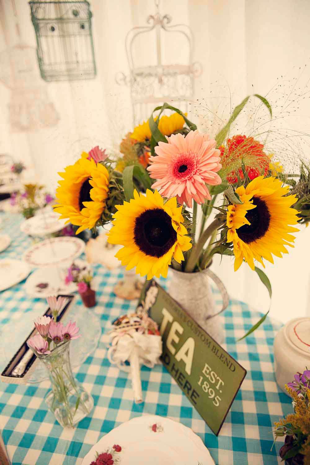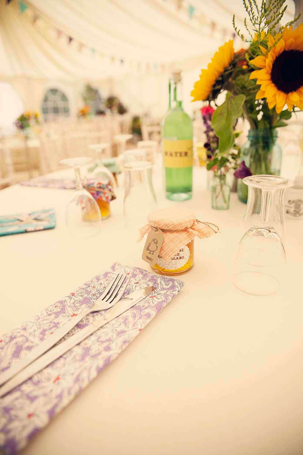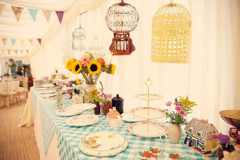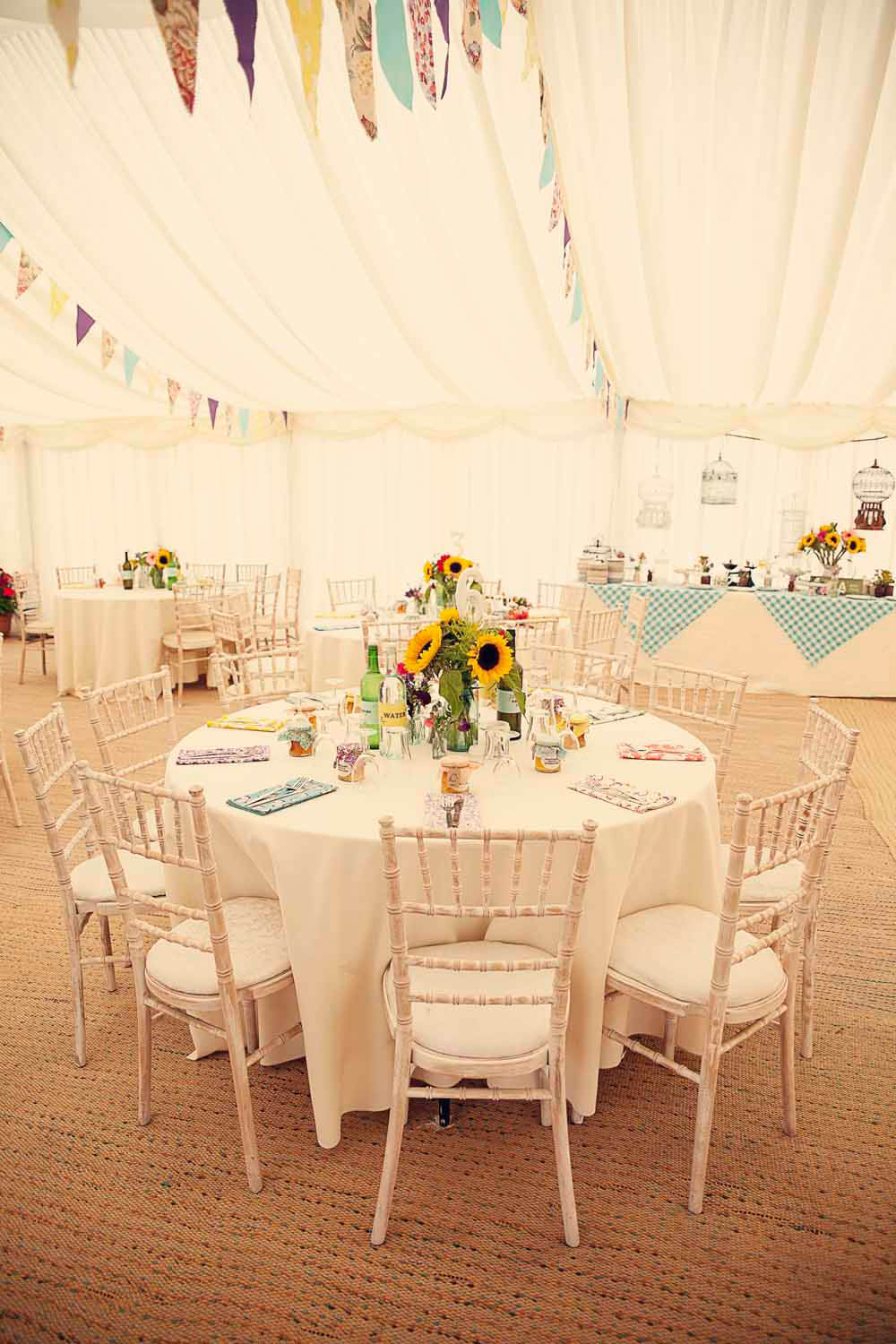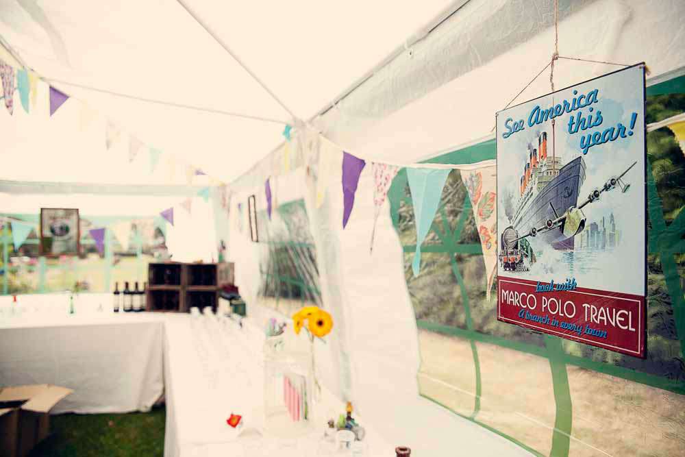 “I arrived in the UK 3 days before the wedding and immediately had to go and meet our vicar, after that we had to fight the jet lag to start decorating the marquee,” Liz told me. “I didn’t realise how much stuff I had collected over the year and when I saw it all piled up in my parent’s dining room I felt really overwhelmed by it all. Luckily my sister and bridesmaid were on hand to keep everything on track we knuckled down and started hanging and arranging.”