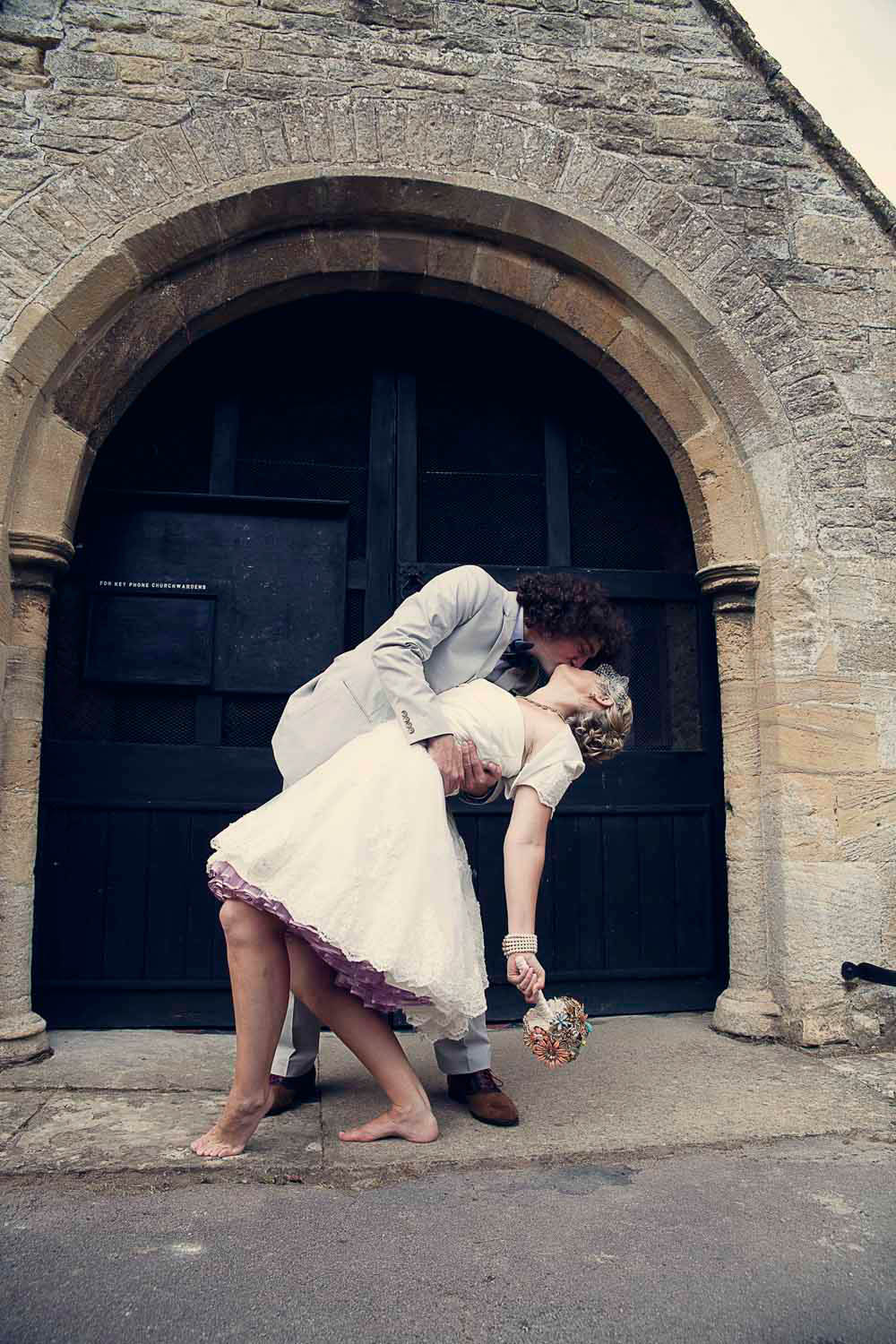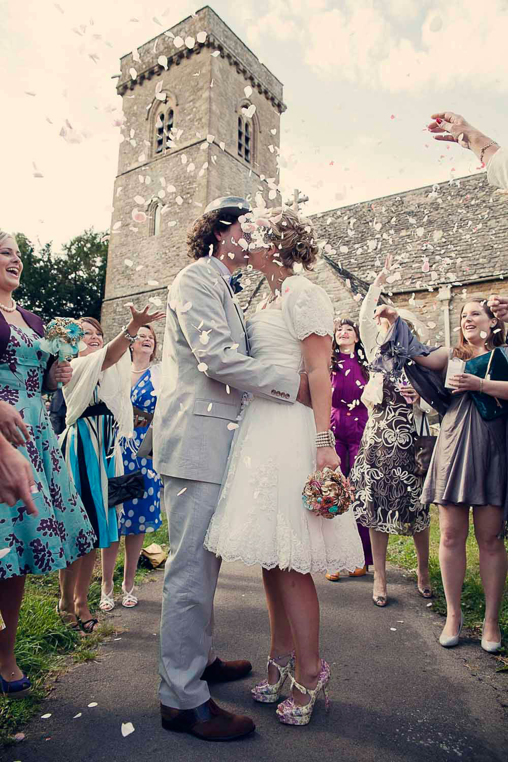 Liz wore a vintage dress which she found in a shop in Cornwall. “I found it when I was out with Mum. Had no intention of buying a dress but I fell in love with it. My Mother in law (Kim) then made me the bolero out of the fabric she cut off the bottom of the dress and shortened it. I turned out perfect, exactly what I wanted.”