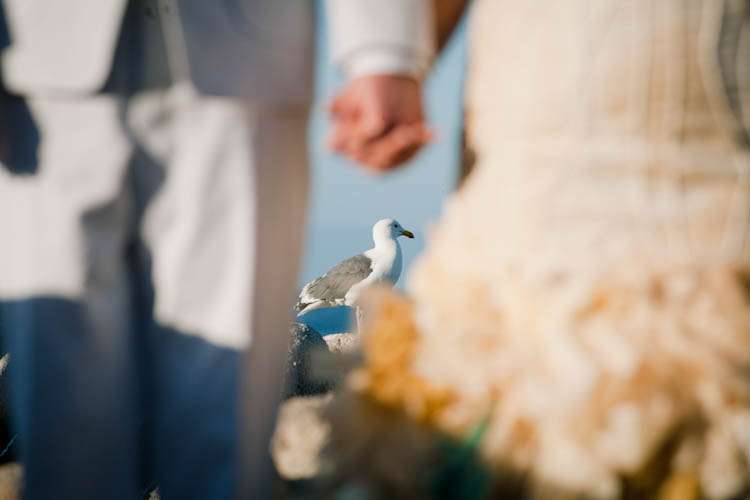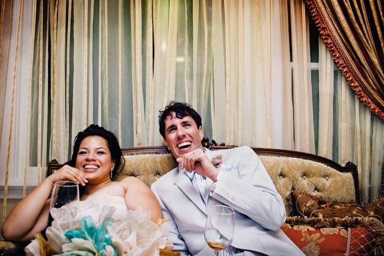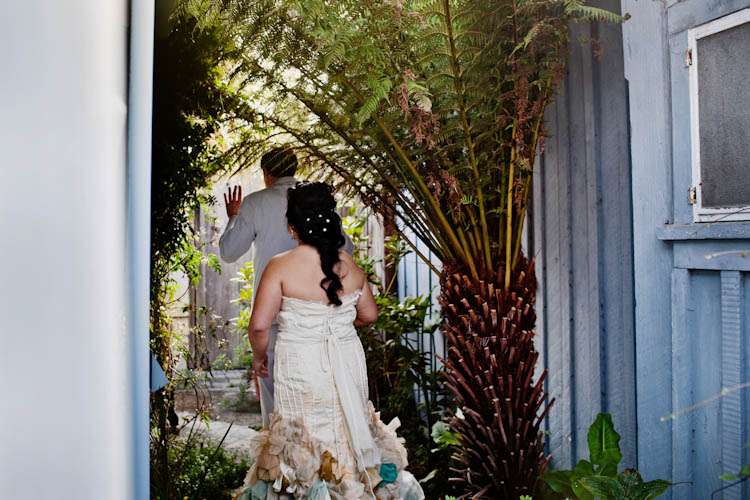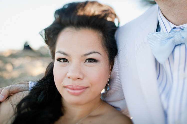 The colours of the sand and ocean played a major role in the influence of the bride’s wedding dress and the groom’s suit. The bride’s dress was custom made by Wai Ching and the groom’s seersucker suit came from Black Fleece. “Inititally, I didn’t think the dress mattered all that much and ended up buying a cheap-o dress without much thought. Afterwards, I found a blog post featuring a dress by Wai Ching (Chrissy Leung). I immediately fell in love with the dress (and the hastily-purchased dress was promptly returned). I emailed her immediately and collaborated with her to create the true dress of my dreams. Everything was done via email: measurements, tons of photos for inspiration and descriptions. I finally flew up to Seattle for one final fitting, made some adjustments and it was a done deal. I love the dress. I still break it out every now and then and wear it around the house! It’s such a fun dress.”