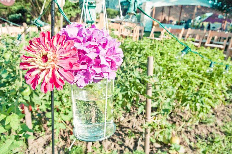 “I made bouquets with my friends from flowers that grew down the street at Young’s family farm,” Rebecca told me. “I made the flower garlands that hung up around the pink boxer bar. I made all the napkins from Amy Butler fabric. I collected vases and jars at garage sales and streetwise junkyard shops near Brooksville, Maine.”