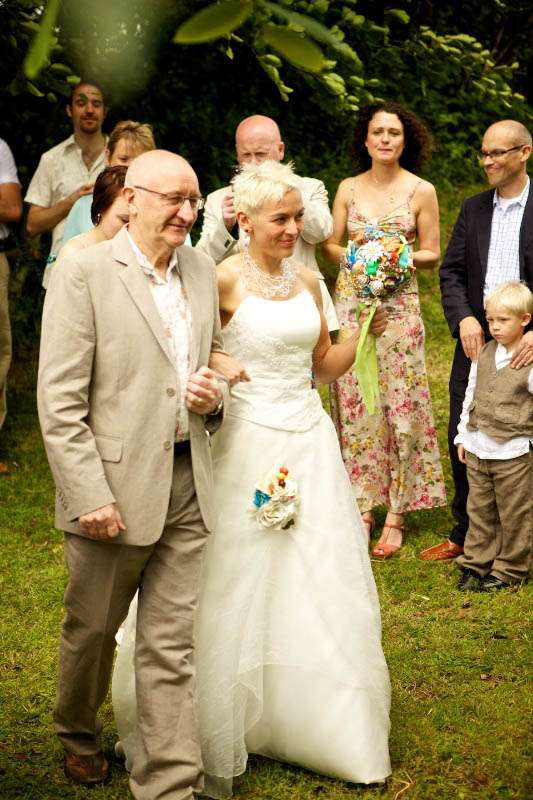 The bride’s love of all things indie, unusual, hand made, recycled and upcycled was the catalyst to the theme of this creative wedding. After a hand-tying ceremony, where their friends and family all added a strip of fabric to their hands, Mel & Carl invited their friends & family to a laid back and family-central wedding reception.