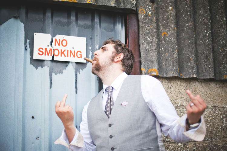 Groom’s Outfit: Saville Row (suit), Joules (shirt), Emma Ashford (tie), Volcom (hat), Urban Eye (Folksy) (cufflinks)